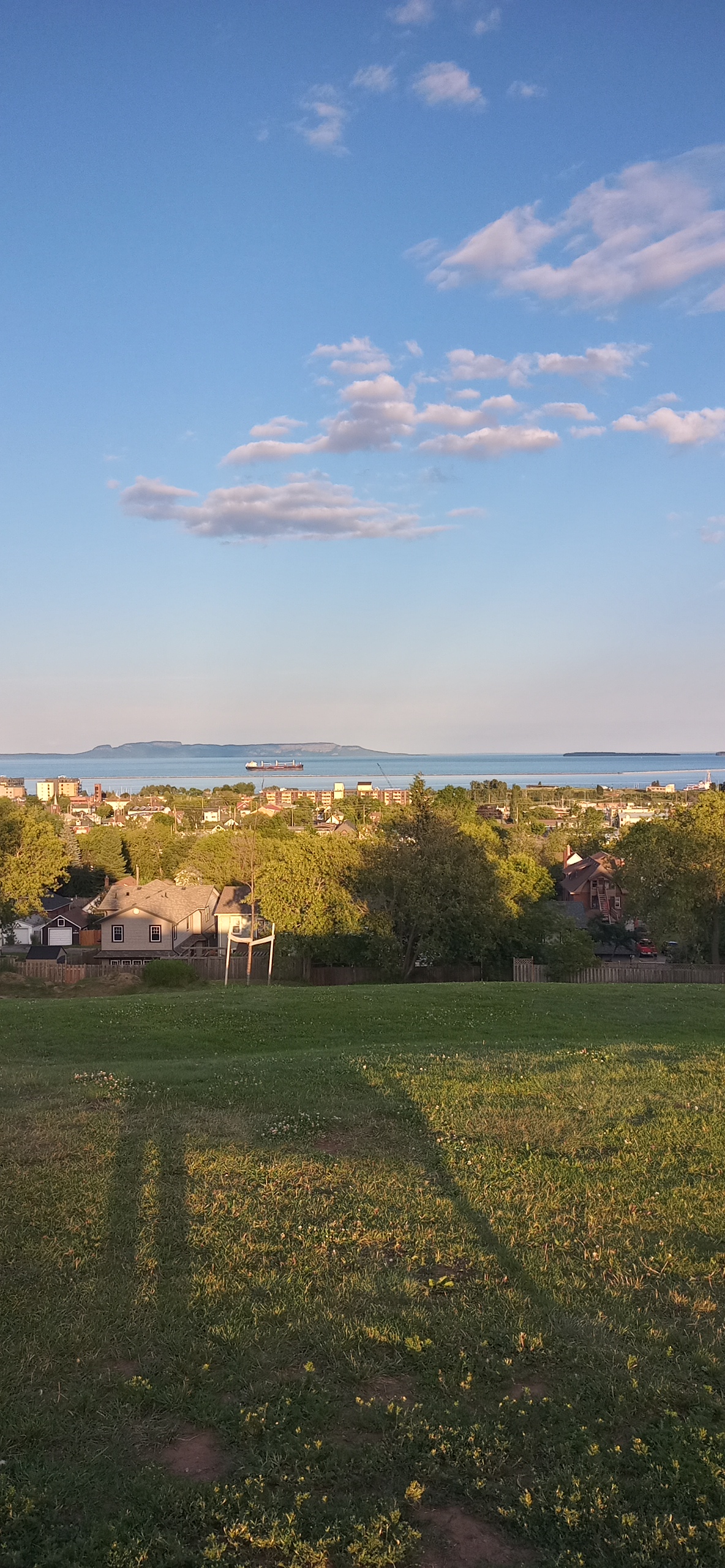 Around 5:30, Teresa and Maureen showed up, as we were joining them for supper—the first place we tried was closed, so we went to the Thai Kitchen- where the food was very good. They then drove us around a little and we went up to Hillside park- here’s a view of the bay and the sleeping giant. We then went to their house, and we got to meet the pets. We got back to the boat around 10:00.