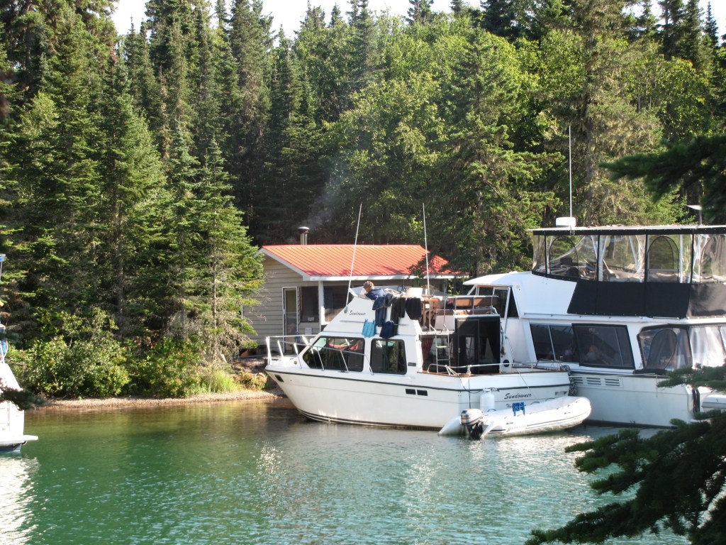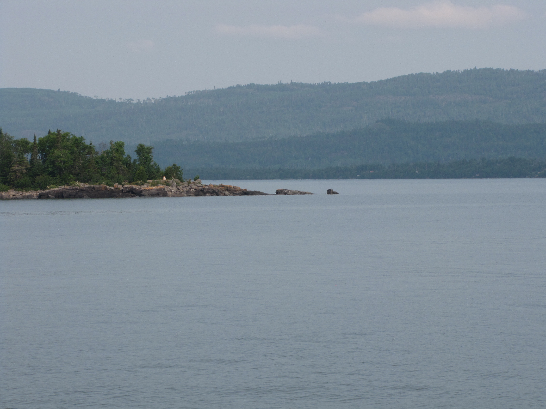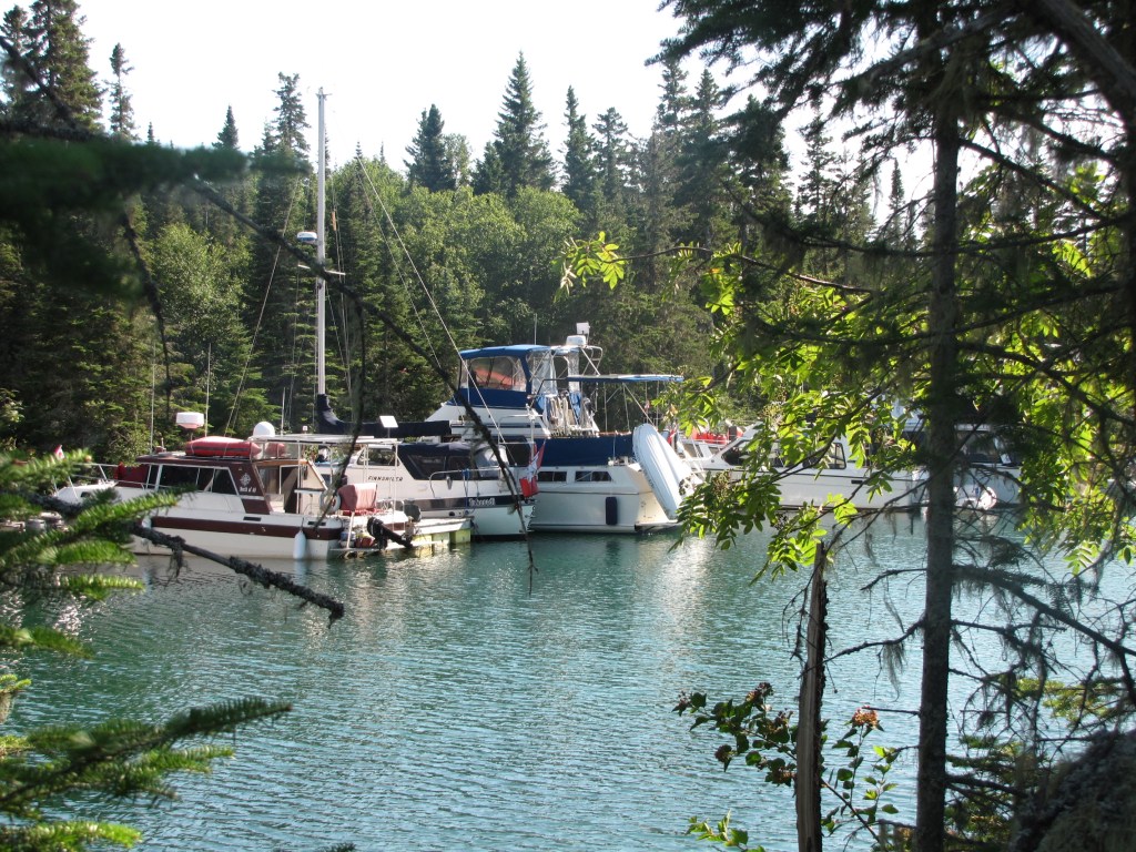 The following day we went to Red Rock Marina, and plugged into power, topped up our fuel and water. Our next stop was Rossport, and we stayed at the dock which we had frequented last year. We went to the Serendipity restaurant in town for their Friday night special- prime rib. On leaving Saturday morning, one of the engines wouldn’t start, Andy started the generator, and put the battery charger on for a few minutes to get it going. We travelled about 30 miles to the Slate Islands, and stayed in two different anchorages, in hopes of seeing the caribou that inhabit the islands—however none were seen.