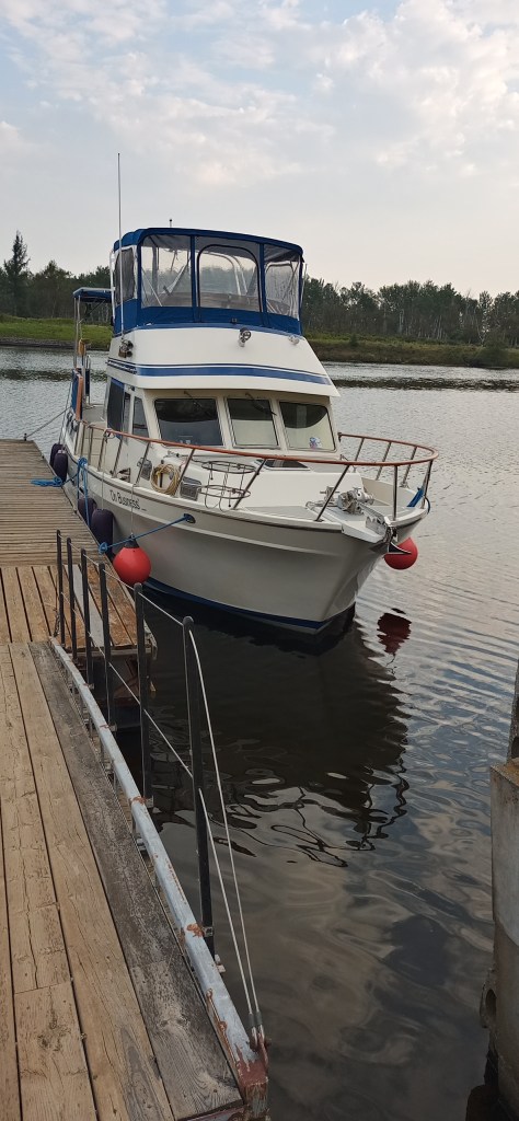 At one point, a visitor on the dock suggested that instead of going all the way to Red Rock to be pulled out that we should try and find a diver that could change the props. We spent some time doing that—one guy could come out on Sunday- but didn’t have the right tools and no guarantees that he could accomplish the task. We decided our better bet was to limp into Red Rock- yet again, and get pulled out with the town grater and someone’s trailer.