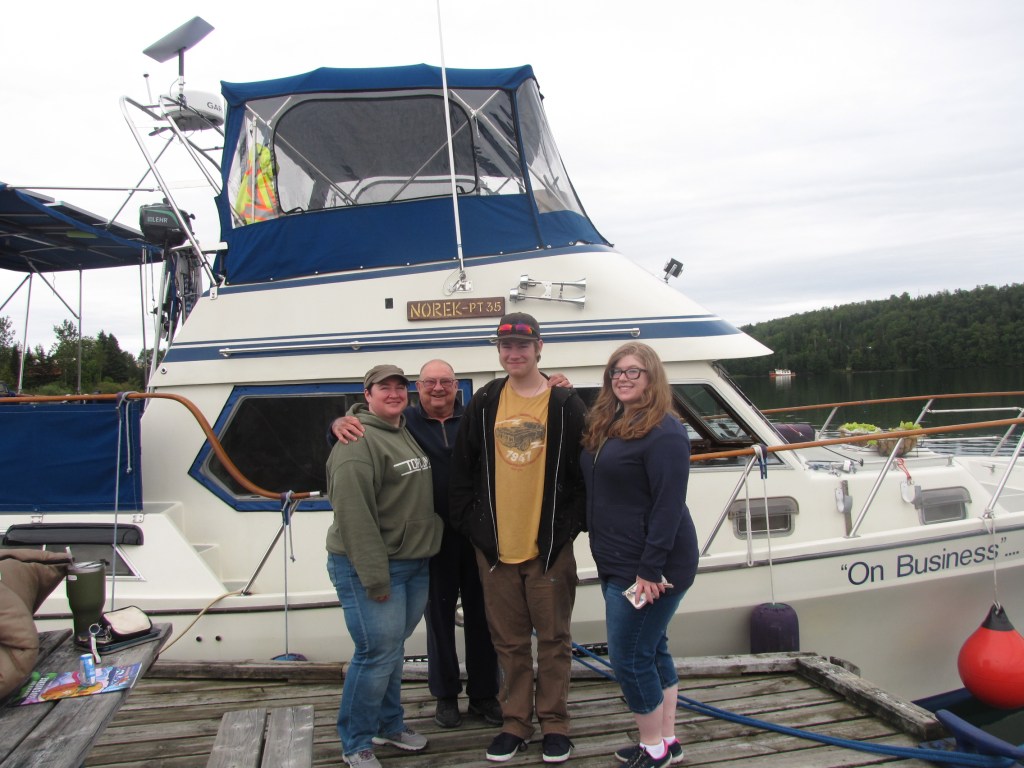 Erin and her cousin Shannon arrived around 7:30, and we visited and showed them their sleeping quarters in the ON BUSINESS hostel. Jack got bumped from the V-berth to sleeping on the dining room table—which he said was also not soft enough for sleeping. In the morning after some more visiting, and a few pictures of the crew, and 3 generations of McKendry’s, Erin, Shannon and Jack left.