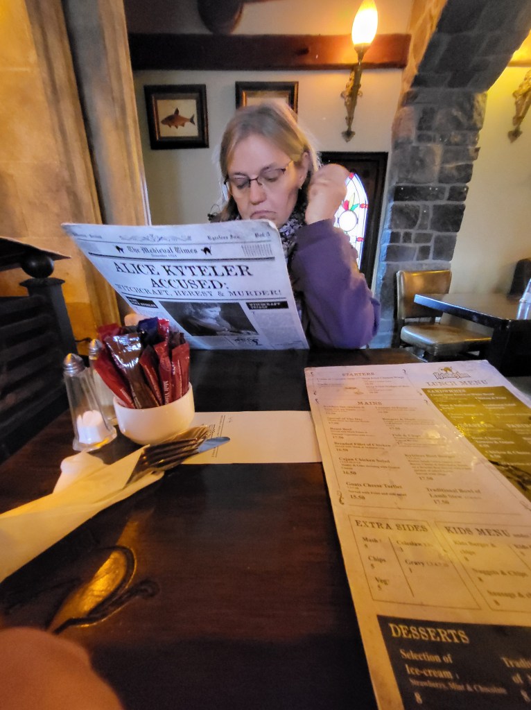 On on way back we stop at a grocery store in Ballymena, and purchased a few things. We drove back to the west wing, and noticed that the film crew had left. The laundry wasn’t complete, but it was on the drying cycle. Around 7, we went into Broughshare to the Merchant, and ordered fish and chips- I ordered smoked haddock and Andy had cod- the orders were massive- we likely could have shared an order. I enjoyed a couple outciders and Andy had wine. We then watched coronation street- in Ireland it is on Mon, Wed, and Friday for an hour, typically in prime time between 8 and 9. Ireland, have lots of game shows, and you can find one at almost any time of the day or night. We watched a lot of the chaser, but also bull’s eye- that combines darts and trivia, as well as tip-it, more questions, and moving markers to win money. This part of the world love their quizzes.