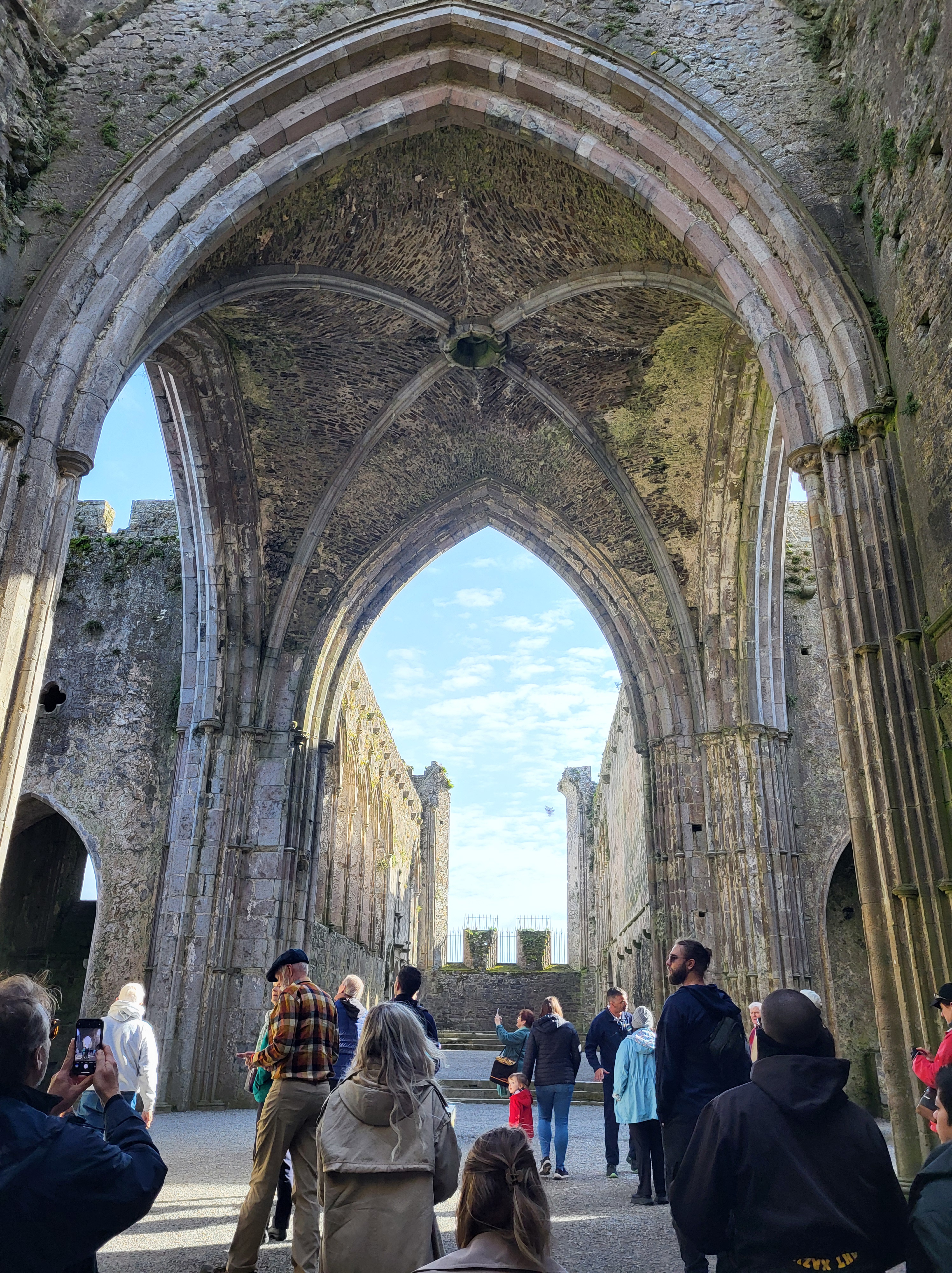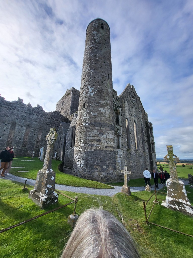 In the morning, we set off for the Rock of Cashel, enroute we stopped at the Vee, which is about 2000 feet above sea level. The V refers to v shaped turn in the road in a gap in the Knockmealdown mountains, from here you can see multiple counties. Upon arrival at the Rock of Cashel, we learned it is the greatest cluster of medieval buildings in Ireland, it was originally a seat of the Munster kings but was given up and repurposed as a church in the 11th century. It also has views of the plains of Tipperary, one of the most fertile areas in the republic.