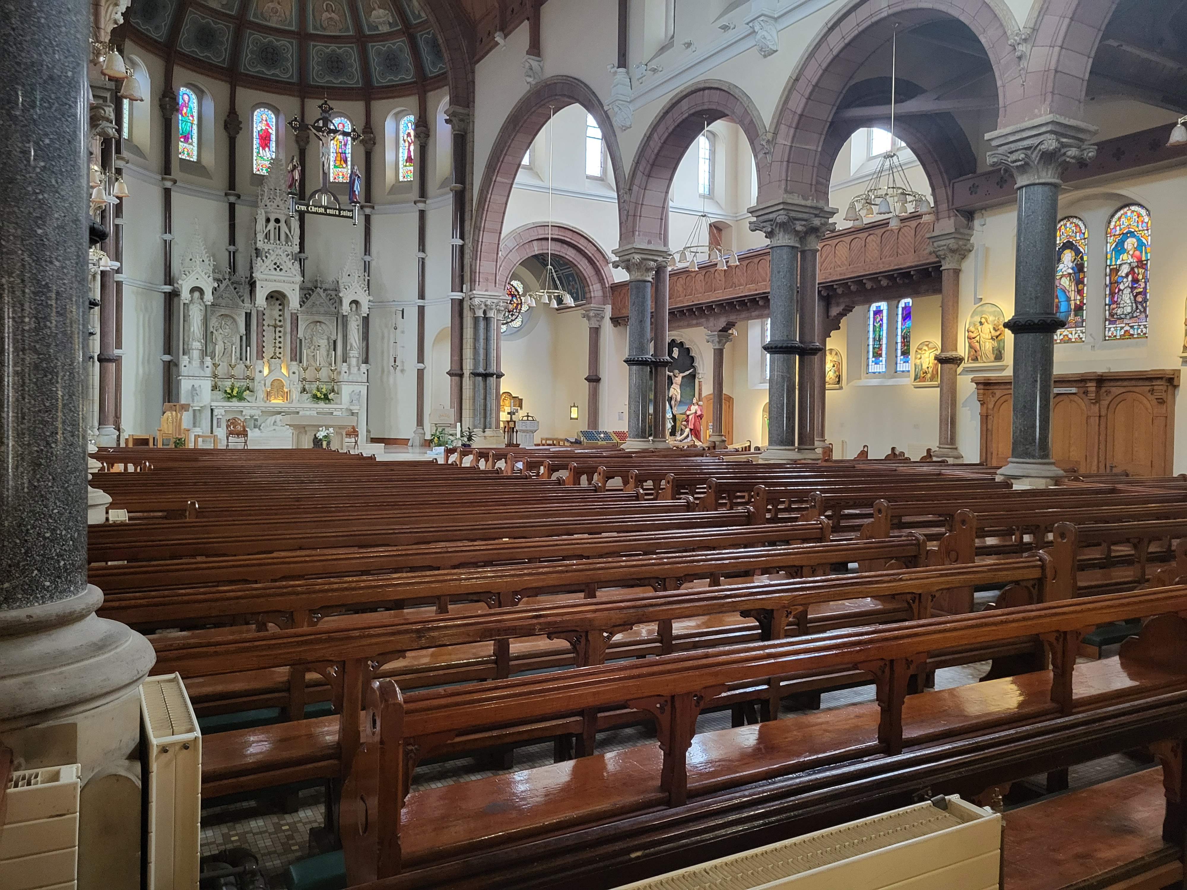 We were able to find the marriage, and birth records of his grandfather and 2 great uncles. We also found that there were McKendry’s in a cemetery in Portglenone. Leaving PRONI, we caught a bus to city centre, as it was raining, and went to White’s pub for dinner- rather than beer I have been trying the Irish apple ciders, and had a rockshore, which I think is made by Guinness—quite refreshing. On Tuesday morning after breakfast we walked around near our hotel and saw St Patrick’s church as well as St. Anne’s cathedral.