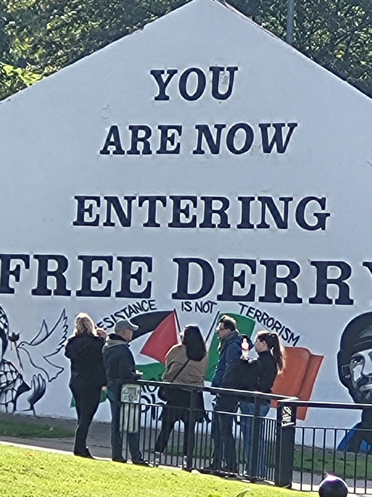 Following our visit here we drove to Londonderry, and once we found parking, we set off walking to see some of the murals. We could have booked a 2 hour guided walking tour, but we did not, which I was glad of. At one mural, there was a tour, and I couldn’t understand a word that the tour guide had said.