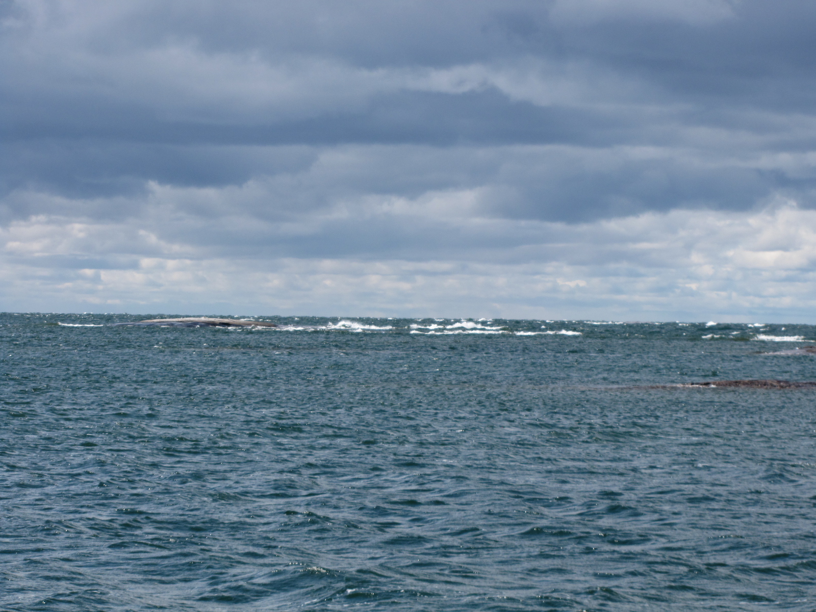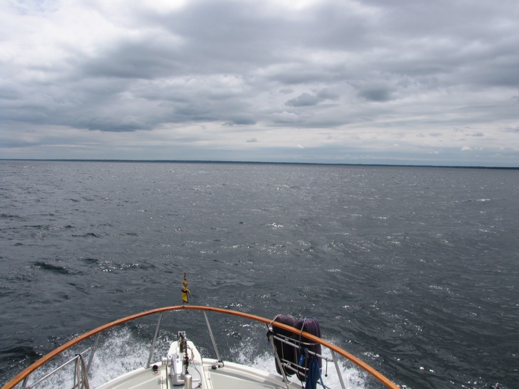 We saw people on the beach, and one person actually was walking in the water, as well as several kayakers and later in the evening a fishing boat. We left early (6:30) on Thursday morning headed for the Sault, which was about 80 miles away. There was very little wind, and sunshine for the first 5 .5 hours, until we approached Ile Parisienne and Whitefish Bay, then the wind picked up and we had a good chop, and waves hitting us on the beam.