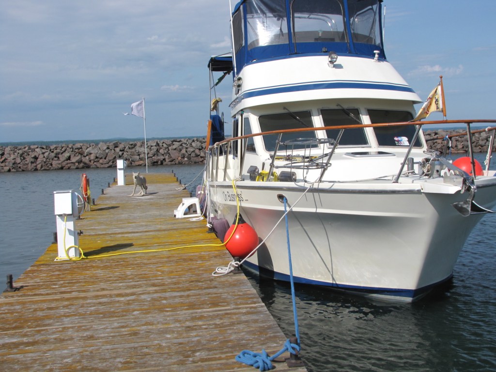 On Wednesday morning, we left at 8:30 and proceeded up the Minnesota coast to the Grand Marais marina, this was a 33 mile trip. We arrived around noon, and ran into the crew from the Princess Margaret, who were getting fueled up for the next leg of their Great Loop adventure.