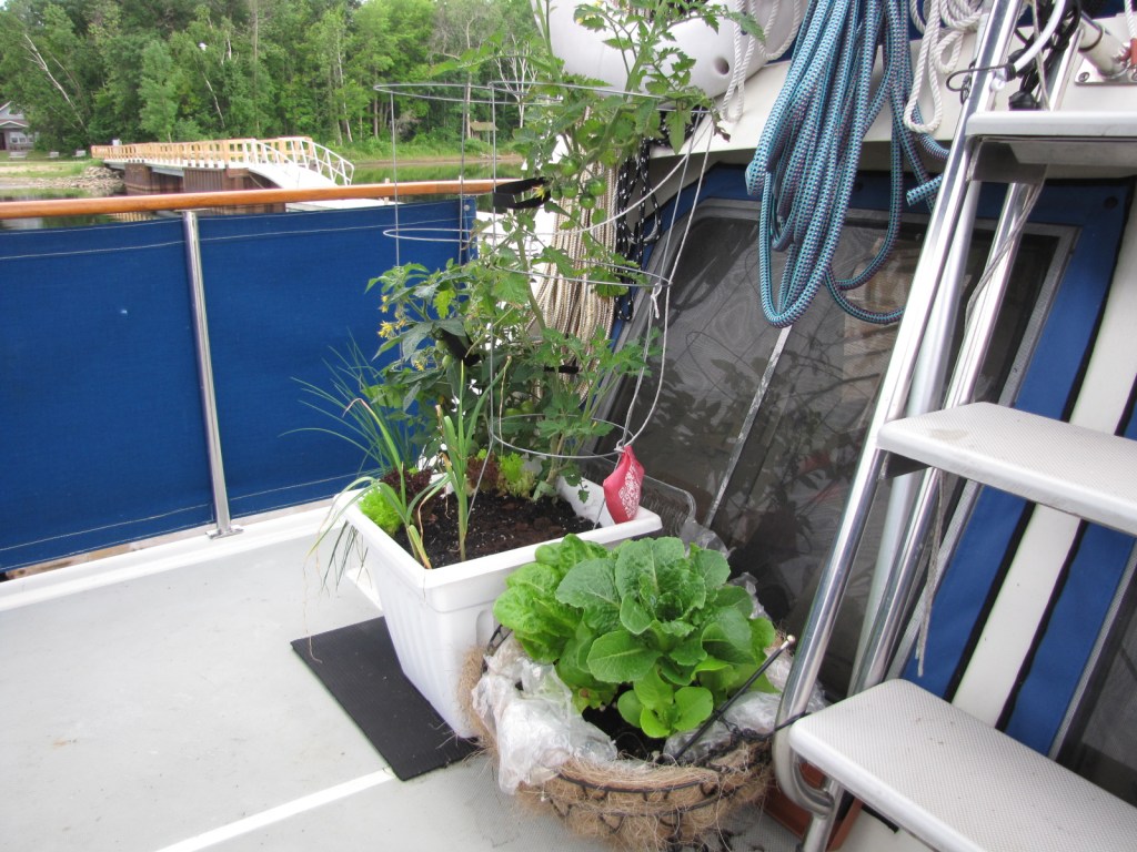 On Monday morning we left the anchorage around 9:00 and continued south east towards Beausoleil Island. We tied up at the dock at Cedar Springs at 1:15. We were the only ones on the dock, but there were a couple of other boats anchored out. Once we had check-in, we went for showers, and got rid of our garbage and re-cycling. My plants are doing well. Have about 10 tomatoes, and the lettuce is almost ready to eat.