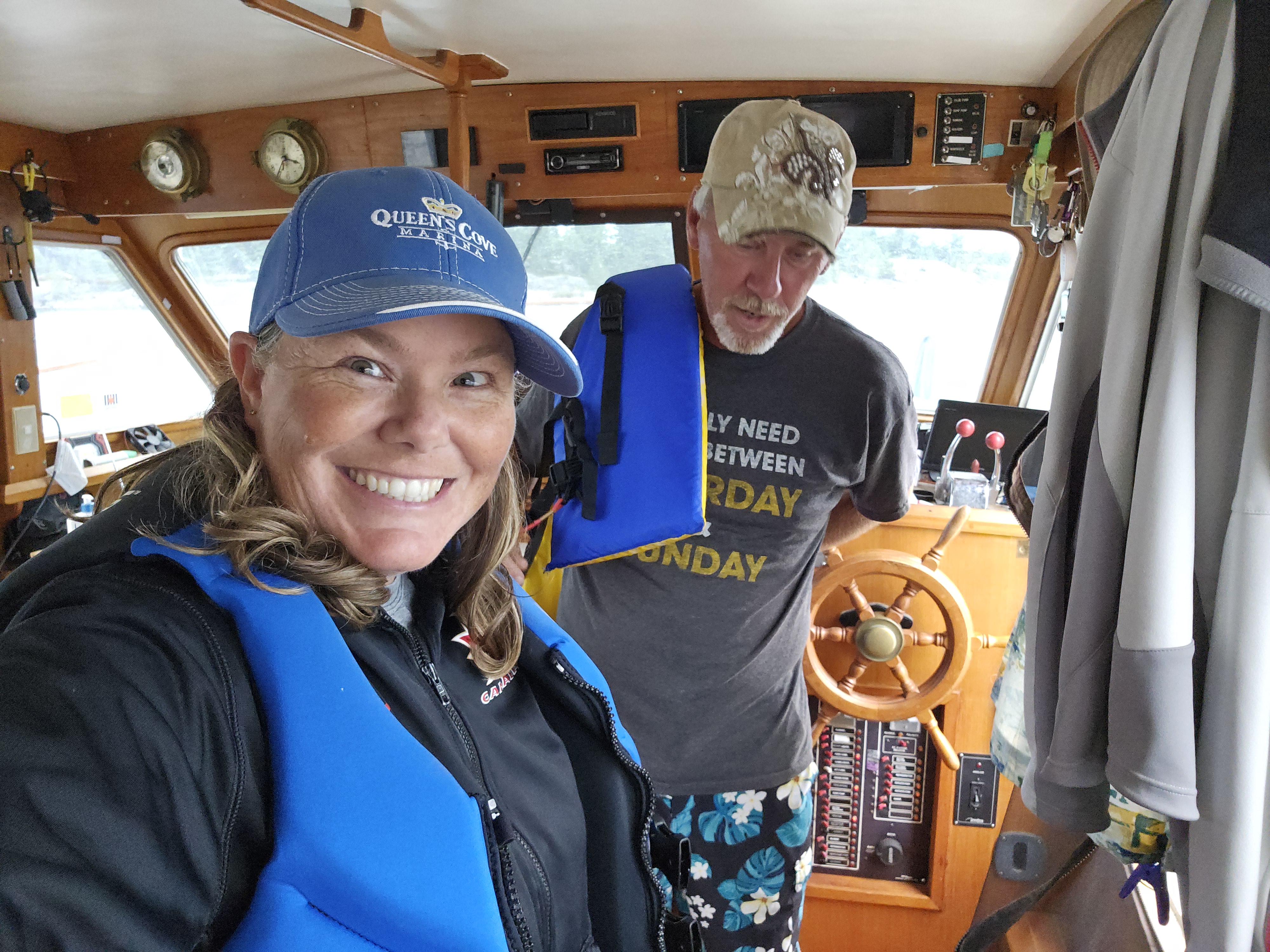 We spent a pleasant night there, we did encounter a few fishing boats going near us in the anchorage, but their wake was relatively small. On Saturday we decided to stay put, and Jamie and Sheri dinghied over and we had a visit along with beef barley soup that I made, and planned our next day. They also dinghy’d to the Parting Channel which was about a ¼ mile from our anchorage—it is very narrow and involves a sharp turn. They guys checked the depth and it was well over 6 feet, so sufficient for both of us to pass through.