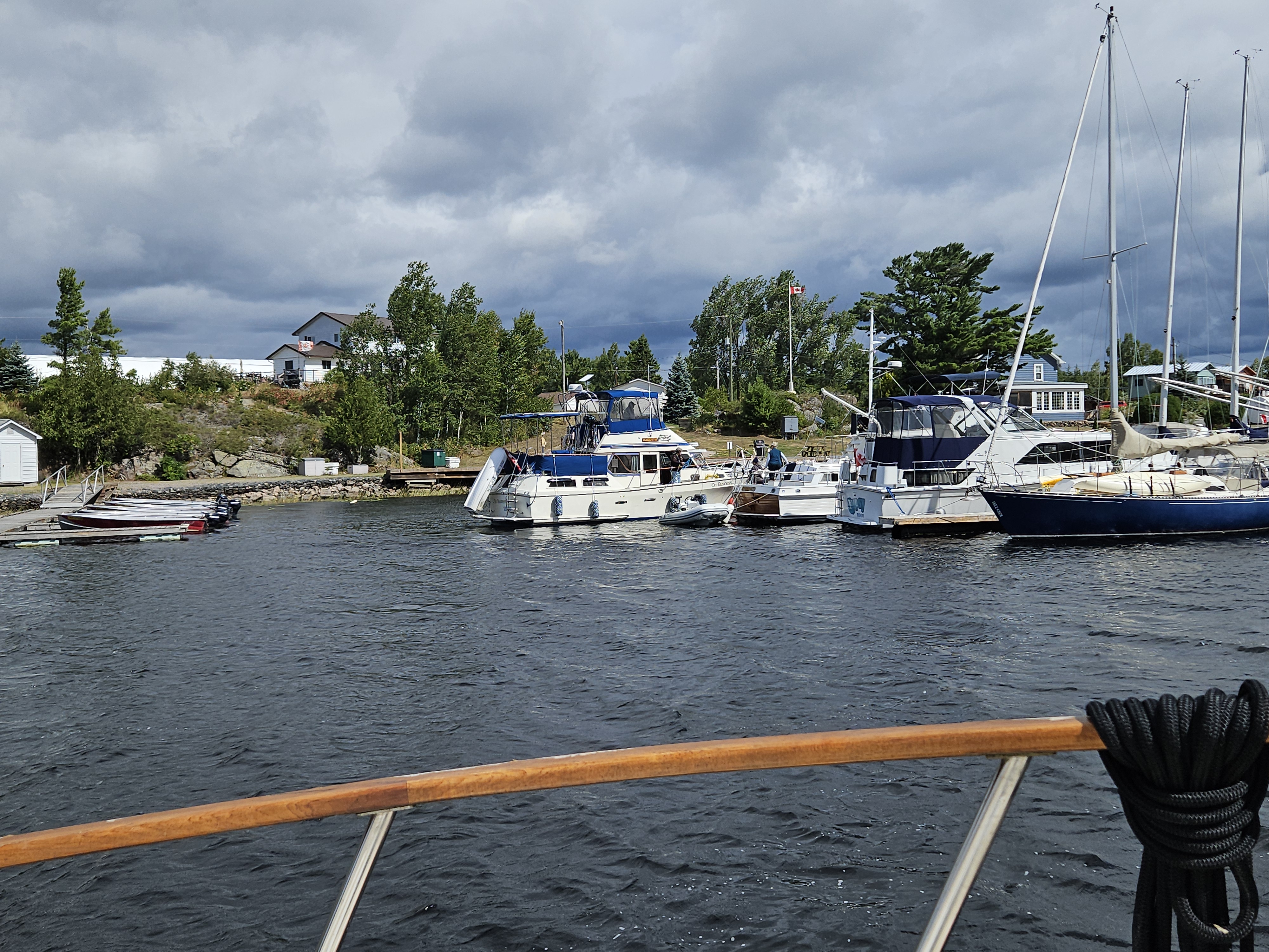 We left Swift just after 10 on Monday and arrived in Couchiching around noon, it was very busy and the grey wall docks were full of people going to the nearby restaurant, we bobbled around for a bit, and finally got a spot and tied up. Later in the afternoon we met people on a sailboat, who had come all the way from Norway- they had been in North America for almost a year, and were headed to Georgian Bay.