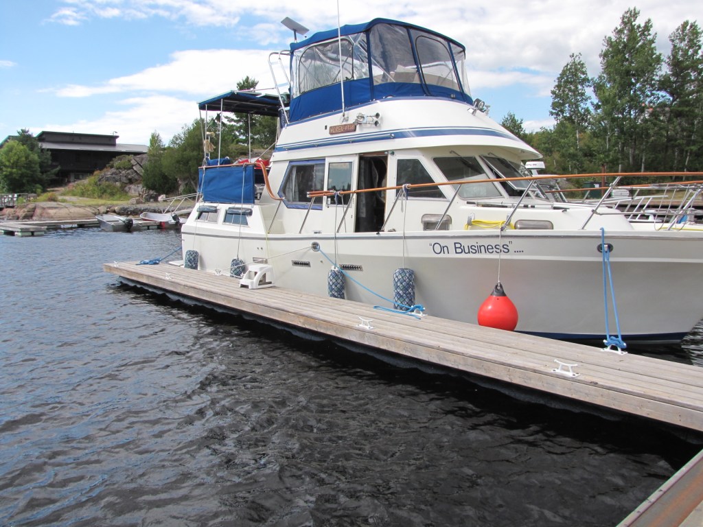 On Business has been sitting in slip A139 in Orillia since July 16th—24 days and counting, we have been extending our stay by 3 days at a time, as the special here is pay for 2 and get the 3rd one free. Didn’t plan on spending a month at the dock in Orillia!! But there are worse places to be—here we have power & showers, which has been useful as the past two weeks have been in the upper 20’s and 30’s, and we had several days of thick smoke from the prairies. There is also a Metro store and Legion within a 5 minute walk, the main downtown along with Wilke’s bakery is about 10 minutes away. This weekend, August 8-10th the Orillia waterfront festival is on- so lots of vendors and music in the park.