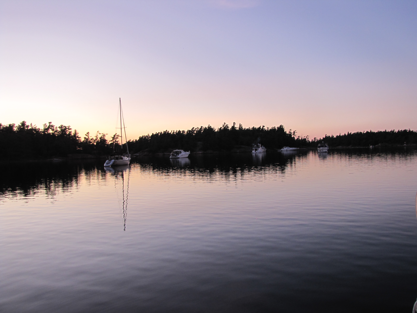 We arrived and there were 3 boats rafted in one bay, a main ship and a sailboat. We proceeded to the far end of the bay and anchored in 10 feet. Andy worked on sanding and adding a coat of Cetol to the oars for the dinghy, and I did a little cleaning and then started reading a book. We stayed put for Saturday and Sunday, doing a few jobs on the boat, and I continued reading. We plan on leaving this anchorage on Monday September 1st and start heading towards Beausoleil island, and eventually the Trent Severn Waterway.