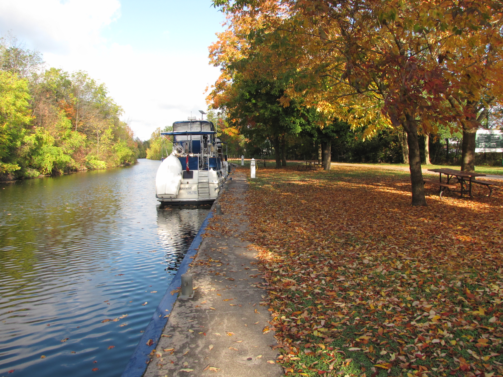 We were thankful to have power, as the nights are becoming chilly. On Saturday morning we left Port of Orillia crossing Lake Simcoe, which was a little bumpy at times, we arrived at Gamebridge around eleven. We then proceeded through the set of 5 locks alone and decided to stay at Bolsover. We did see one other boat- a rental that went as far as Lake Simcoe and then turned around. At Bolsover the bathrooms have been updated, and a shower added—definitely some of the nicest lock washrooms on the Trent.