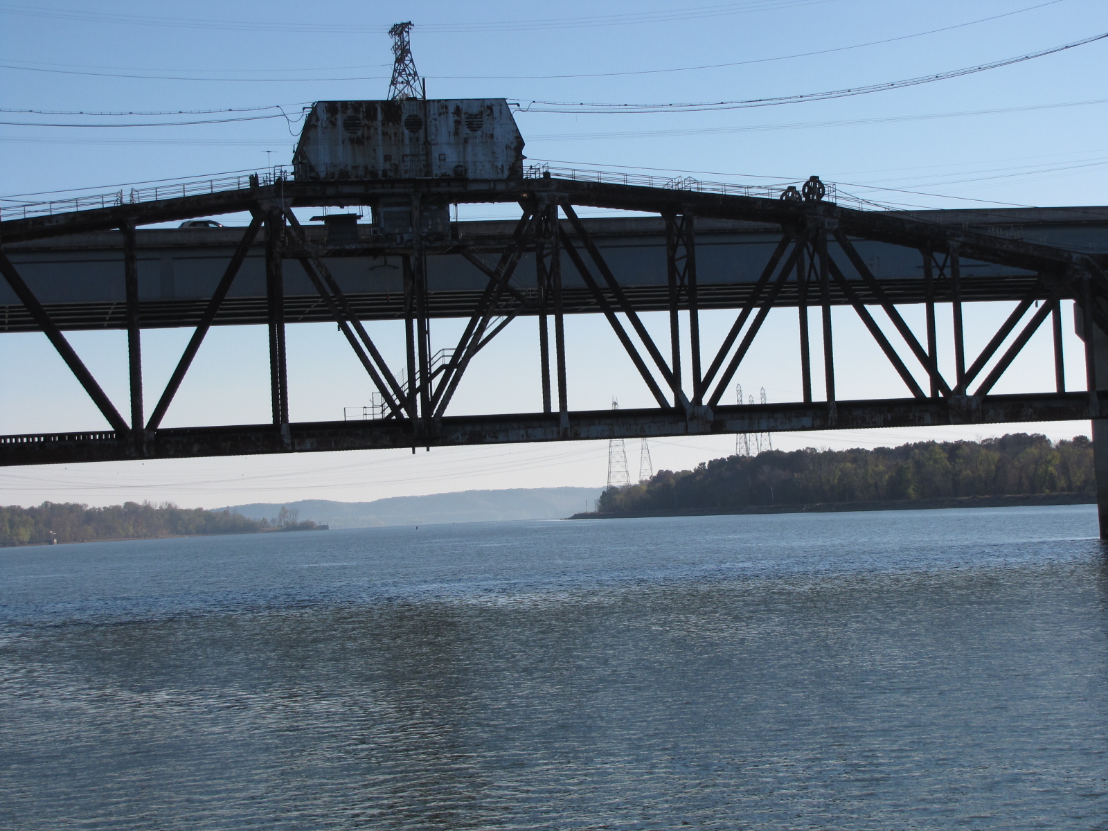 After our previous night in an anchorage, we slept well tied up in Paris, although a little apprehensive about what the mechanic might tell us in the morning. Justin arrived just before 9:00, and it didn’t take him long to diagnose the problem—which was some loose wires to the Port cranking battery. He went on his way and we walked up to the Paris Landing state park Inn for a late breakfast. We then filled up the water tank, and left at 11:40. We saw some interesting sights….