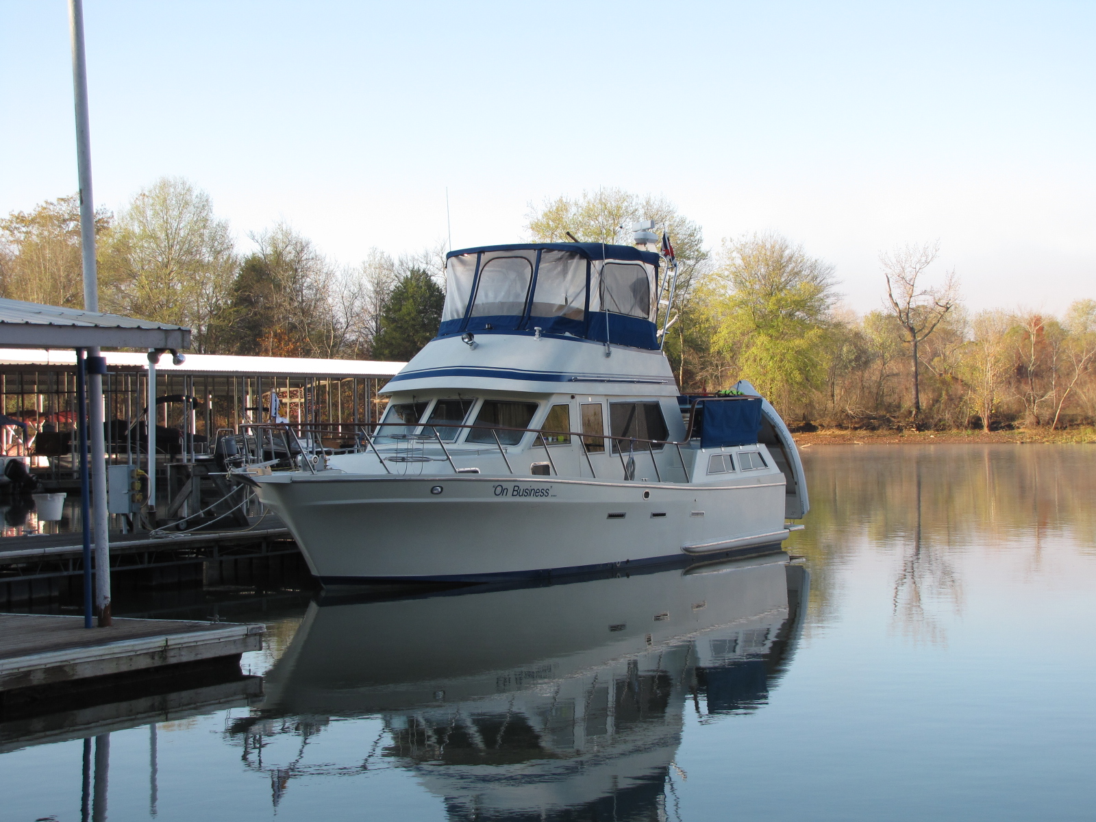 We arrived in Riverstone Marina at 14:15, and parked beside another Canadian boat that had been here for several months. We met a couple of guys, when we first docked, Dave and Walt. Dave was quite interested in the great loop, and we gave him a boat tour, and offered to show his wife the boat as well. He later brought her by for a tour and docktails. We were then invited back to their custom built country home on the hill overlooking the river. Walt and his wife Kathy came over and we had “Rocktails” on their patio carved out of limestone as we watched the river flow by. What a great evening!