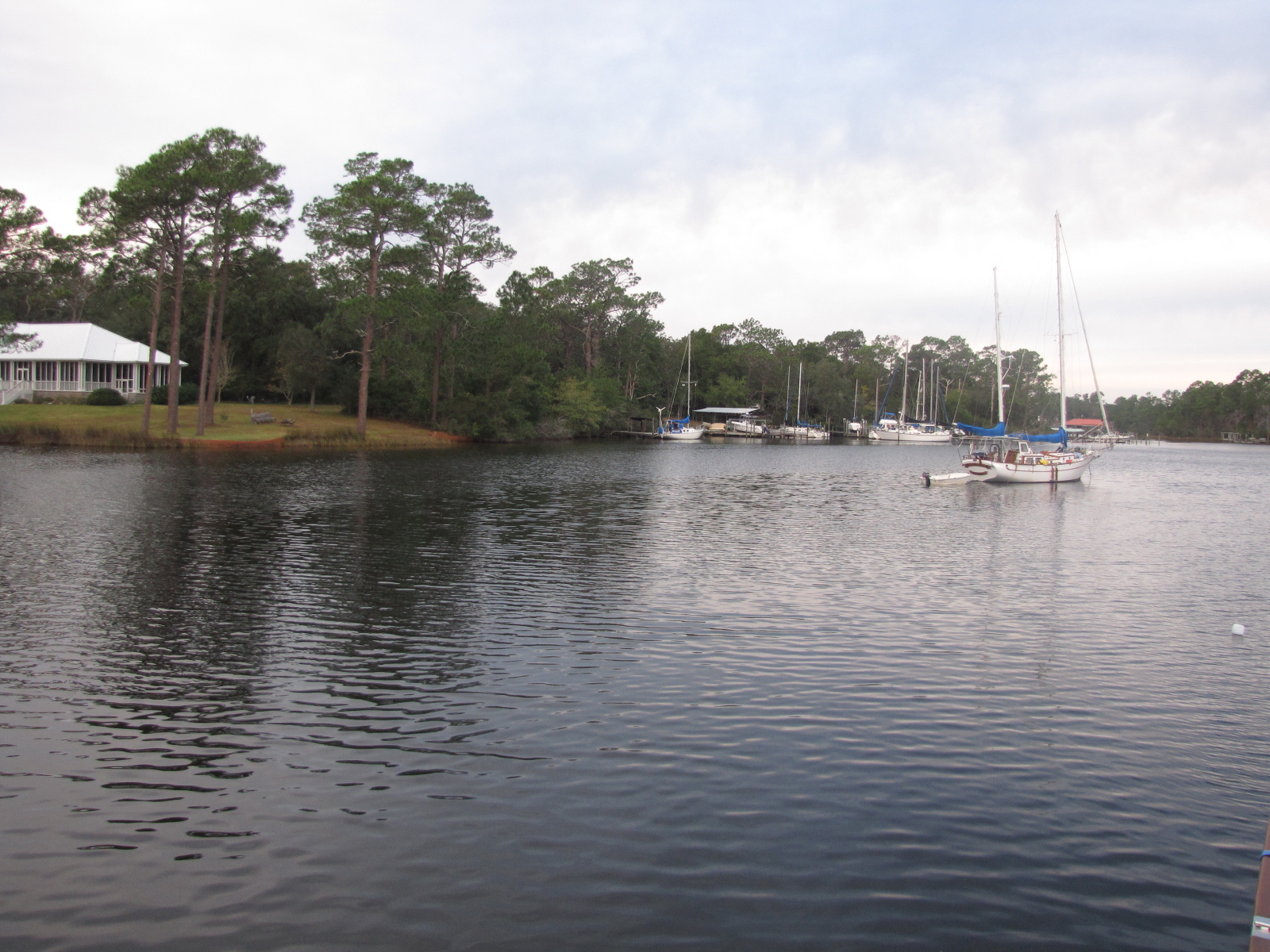 We went about 10 miles and pulled into Robert Bayou mile 165, just past Pirate’s Cove Marina. We were sheltered from the winds, but did swing a little during the night. There was also a sailboat anchored in the bayou with us.