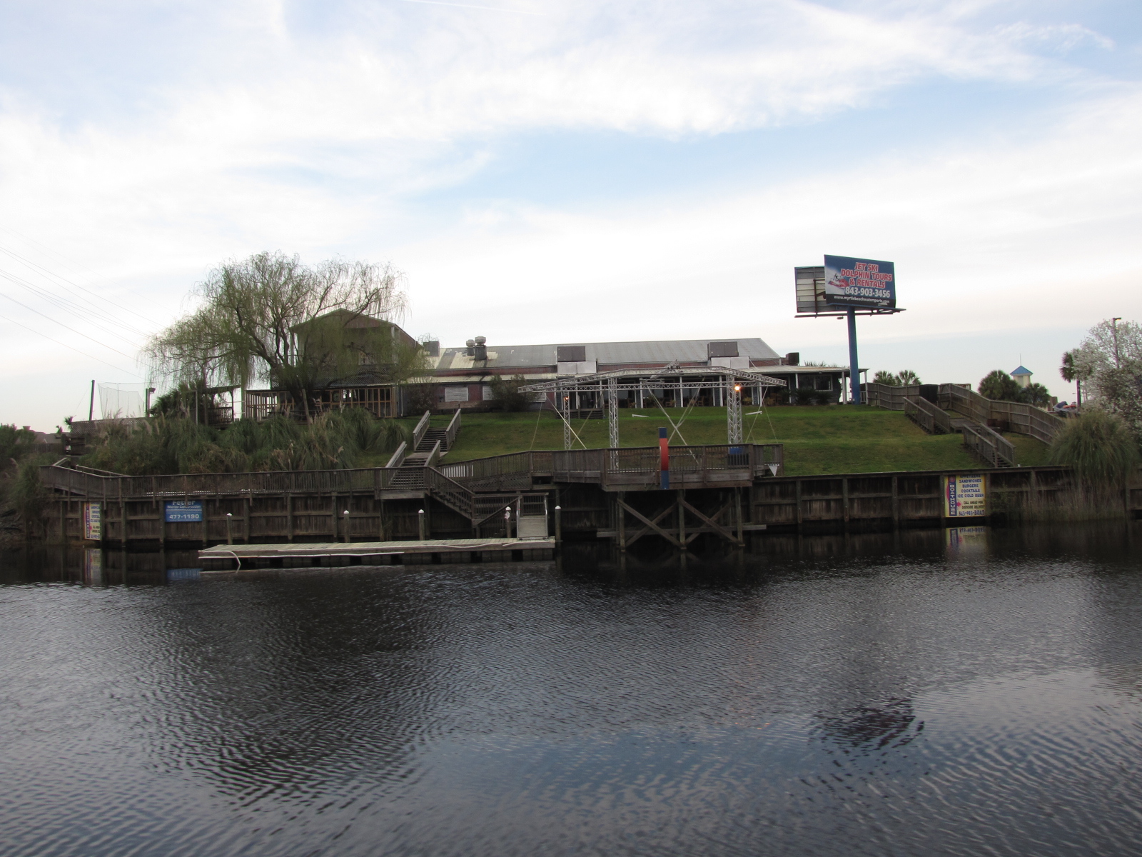 After dropping off the crew at the Waterway village dock, we had planned to go to the boathouse for drinks and appetizers,