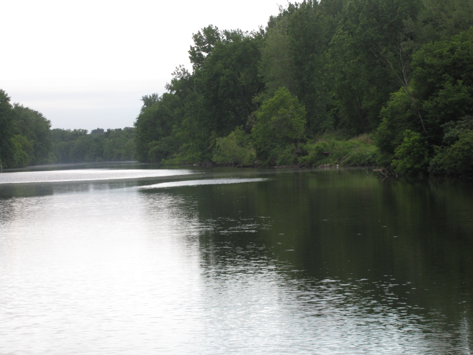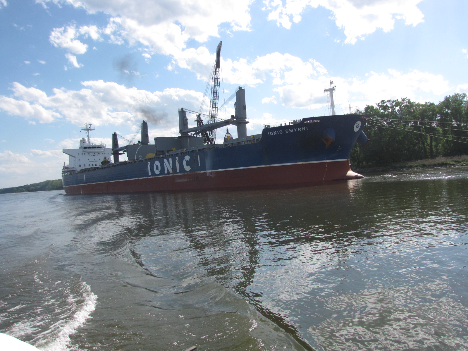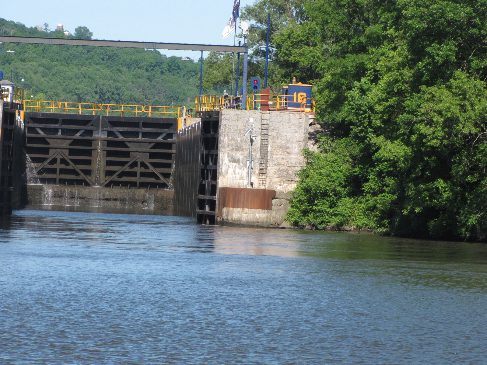 Locks 21 & 22 brought us down a total of 48 feet- it was nice to have a descending lock- they are much easier to manipulate. I saw a deer swim/walk across the canal just after Lock 22, but didn’t have my camera handy to get a picture. I did have the camera to capture these little ducklings that weren’t sure what to do when 2 big boats were approaching them from different directions.