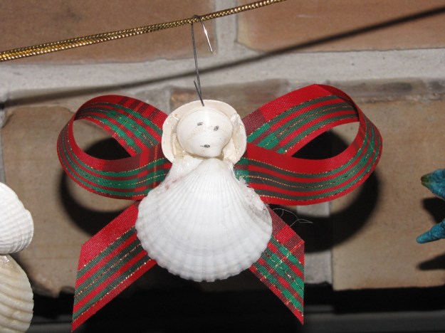 Andy got creative too, and made Angels out of shells we had collected the previous holiday season on Dog Island Florida.