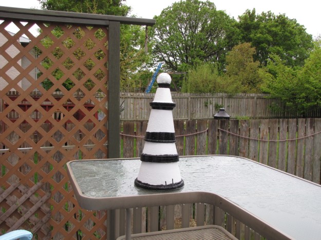 Andy has made me a cutting board to cover the stove top and give me more counter space. I also tried to make a lawn ornament from clay pots to look like a lighthouse.