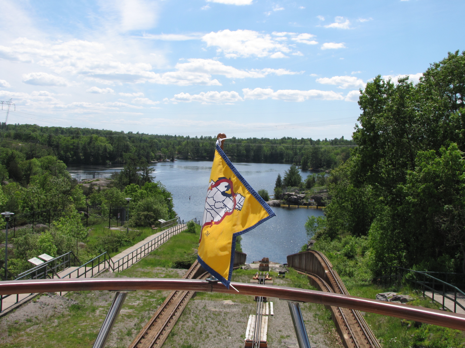 Because of the backlog at the railway bridge, we had company through the Couchiching, Swift Rapids and Big Chute Marine railway.  We arrived at the bottom of the Big Chute by 3:15,