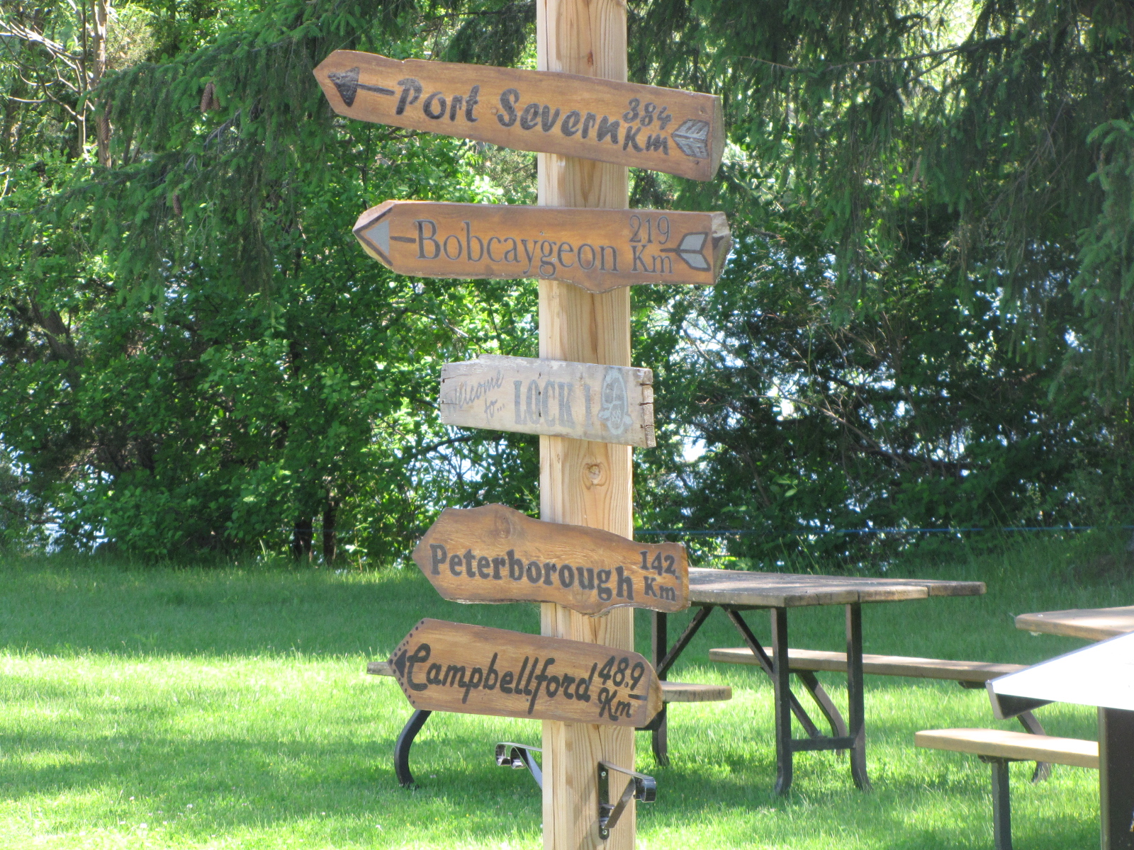 We had an 18 Km run to the next lock, Glen Ross #7, Navigator IV went ahead, and they were just closing the lock gates when we came into view, so they reopened them and locked us down together. We were through this lock by 1:30. This lock had recently had a makeover, and there was still construction equipment around. We had another 11 Km to get to our final destination for the day Frankford #6. We tied up for the night at 2:30, and paid our $9.80 for power hookup. We had gone through 6 locks and travelled 38.4 Km today. Heart Tug, with Audrey and Randy arrived at about 3:00 from Trenton; we had previously met them last summer near Fenlon Falls. We spent the afternoon visiting with them and talking about boating. They had previously spent time on Lake Superior, and recommended a book by Bonnie Dahl for information and anchoring on that lake.
