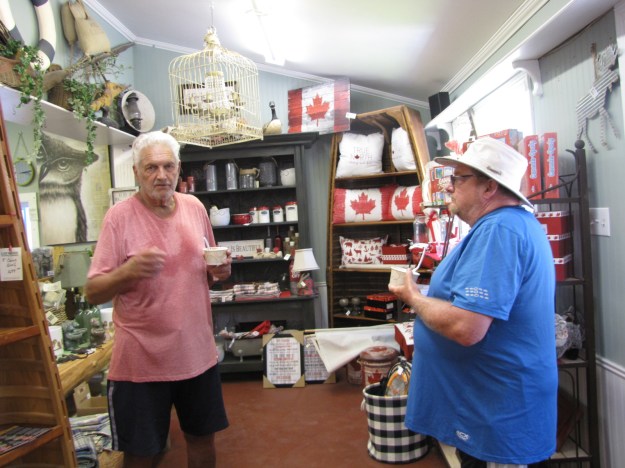 On Wednesday morning we left Douro at 8:50, as we only had to go about a mile to Lock 25. We continued on through Lakefield and then arrived at Young’s Point at about 11:00. We stopped at the Young’s Point trading company for Kawartha ice cream—I was reminded by some friends that I hadn’t included our ice cream trips lately. We did have Kawartha several times while in Trenton, because it was conveniently sold right at the marina. While at Young’s point we encountered Herb Seaton, who we had previously met in Tarpon springs where he is the harbour host for AGLCA. We had also seen him last summer on the waterways near Swift Rapids. He joined us for ice cream .