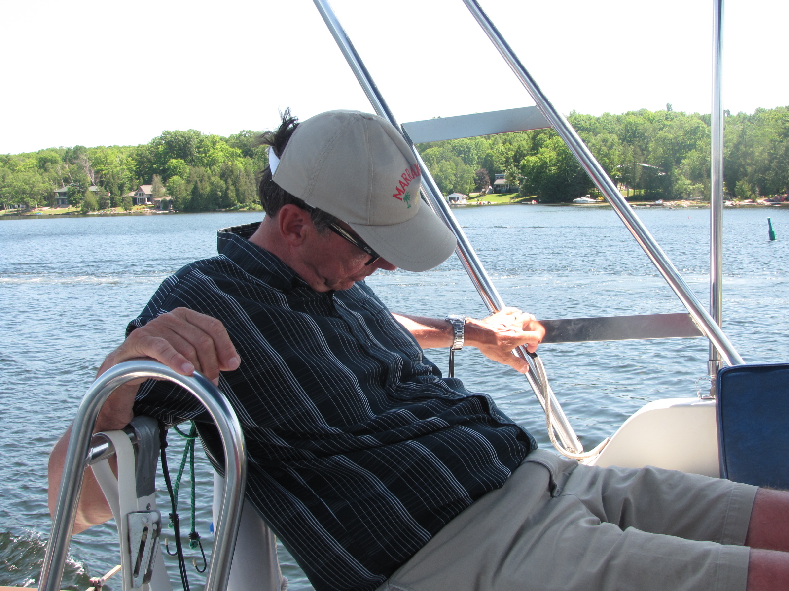 we locked up with one small run- a-bout. We got through Lock 22 by 1:30, and were through Lock 24 at 2:20. Our guest on board, caught a few winks while he could, as handling the lines is more strenuous than driving the boat. It was great having another pair on hands through the 30 locks!!