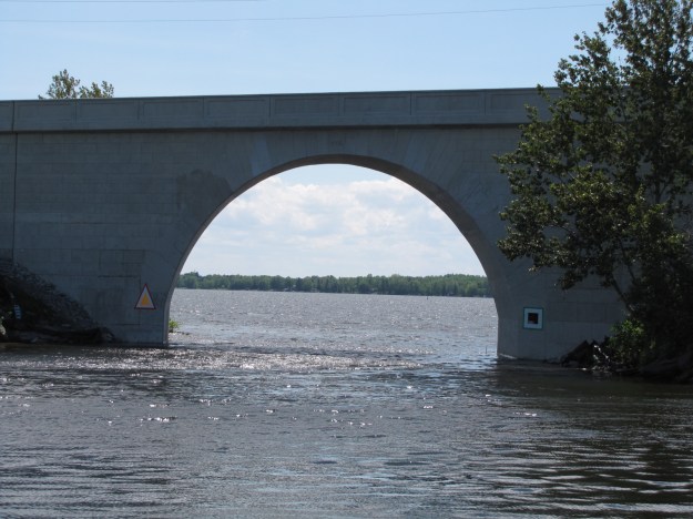 We reached Lake Simcoe at 11:45 and started the 15 mile trek across it followed by the 10 miles along Lake Couchiching. We arrived at the railway swing bridge shortly after 2:00, a train was crossing it, so we had to wait for it to pass
