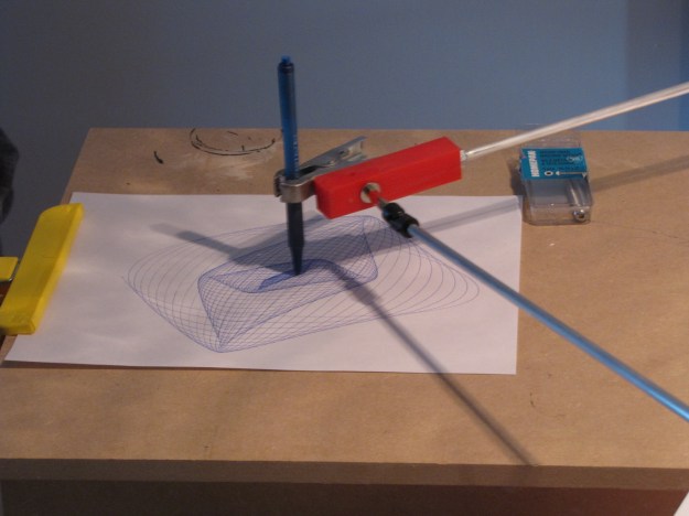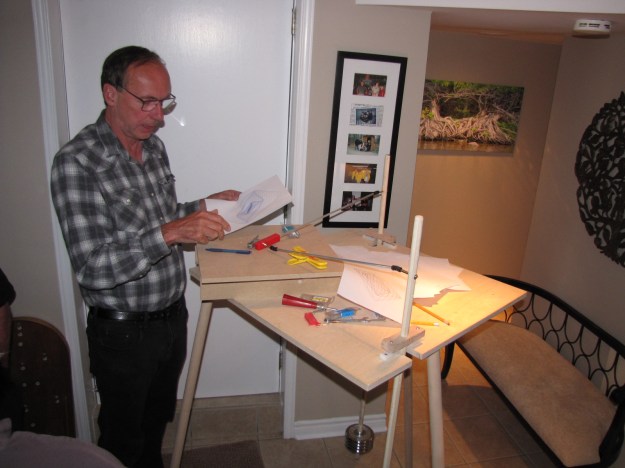 Not to be out done, Glenn showed us his latest project- a harmonograph, he said he had made one when he was in high school, and this was his latest attempt.