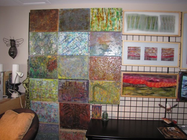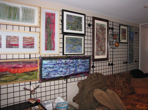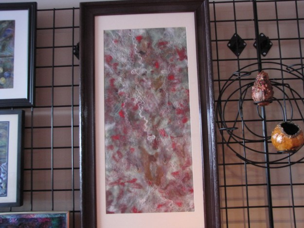 After dinner we went down to her studio to see her latest art projects, pictures made with silk and different wool, she had self-taught herself by watching you–tube videos. Such talent!!