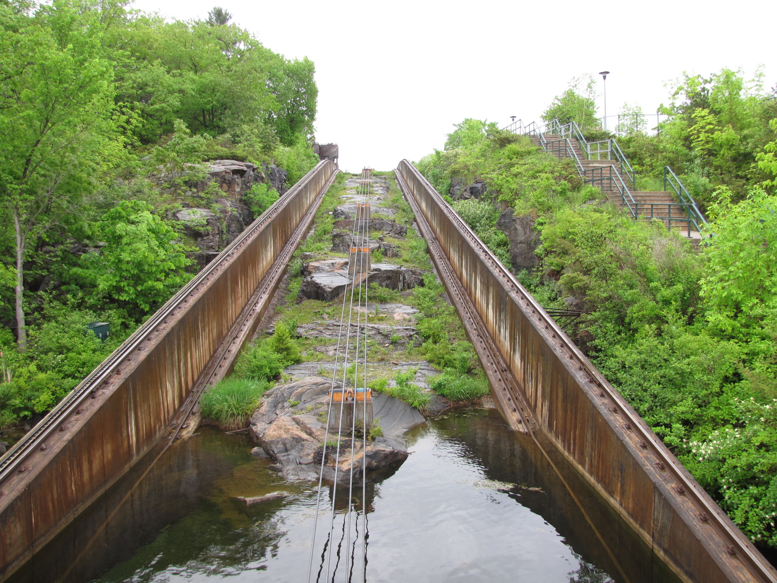 We got to Swift Rapids by a little after 11:00 and the lock gates were open for us. We continued on to the big chute marine railway and arrived there by 1:00. Helen was meeting us there so that she could share in the big chute experience and retrieve her husband. We were out of the Chute by 1:50, and said goodbye to Brian.