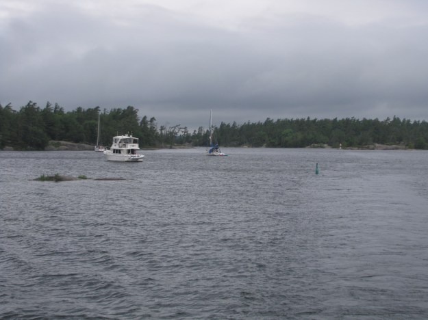 We got up and pulled out of Britt at 7:35. Andy maneuvered us through the markers for the Norgate rocks