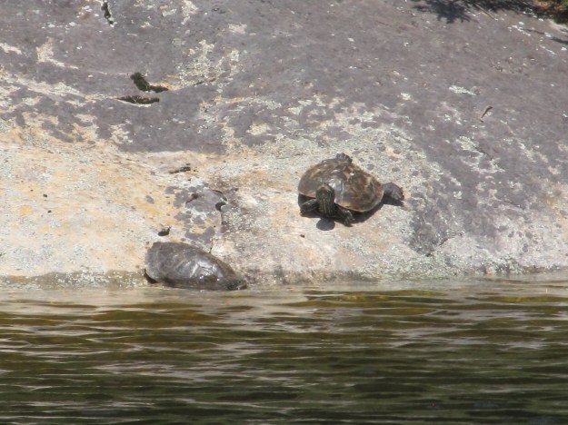 The wind remained brisk all afternoon and it changed from sunny to overcast, and then back to sunny. I saw this pair of turtles on the rocks.