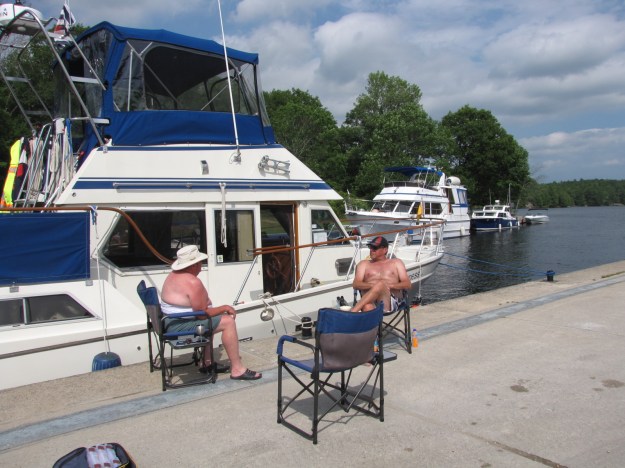 Andy had called Buckhorn Yacht harbour and they had no room on the gas dock- so we proceeded on to the Buckhorn lock—Andy called ahead and was told there was one spot near the lock, which had power- so we speeded up in order to get it before someone locked through. We were tied up to the lock wall by 9:30. Once again we ran into Tom and Julie Van Hall from Sum Escape—we had last seen them in Little Current on our way down to Lake Superior about a month ago. After an early lunch- Andy and Iain left