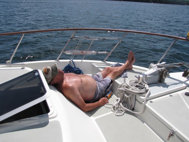 Around 5, Iain and I went in search of Kawartha ice cream- Bigley’s have opened an ice cream shop with a logo that says Happiness is ice cream and new shoes. I had ice cream, and Iain had a milkshake. We checked out a couple other stores before going back to the boat. In the evening we played more cards—I believe we finally let the captain win a game. We discussed the training that Iain had undertaken over the last 5 days and I believe the captain sees potential and that Iain should become a first mate.