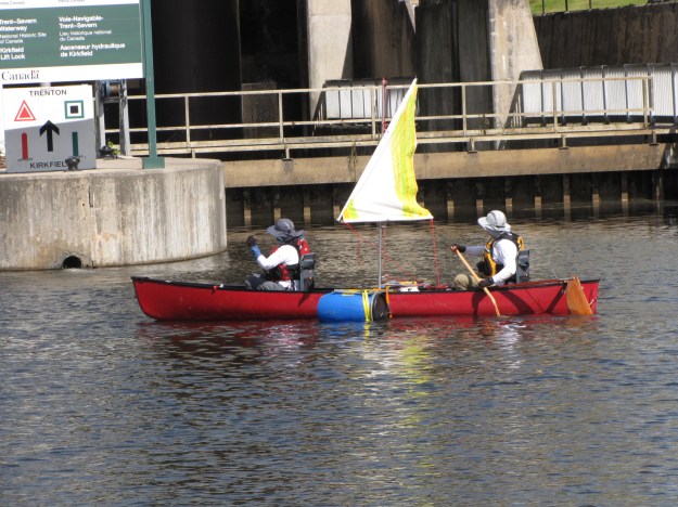We arrived at the bottom of Kirkfield at 1:45 and tied up. We played a few games of Shanghai in the afternoon- Iain seems to have the game figured out and has bushwacked Andy and I a number of times. We saw this canoe go through the lift lock.