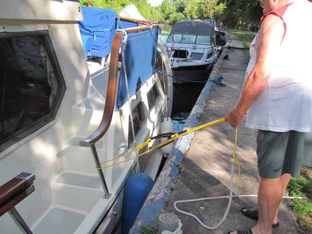 A fellow boater assisted us with tying up. About 15 minutes later the weather system had passed and we were able to bbq for supper. I watched a fellow at a house near where we were parked, move his plants around into the sun, but as soon as it was dark, he moved them very near his house.
