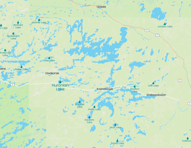 We stopped in Pass Lake for gas around noon, and continued on through Thunder Bay. When we got to Sasquatch corner– I mean Shabaqua corner instead of taking Hwy 17, we turned onto Hwy 11. We were going to spend the weekend at Elaine & Dave’s camp, on Huronian Lake.