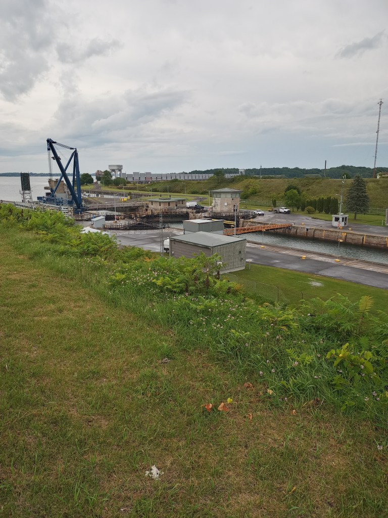 We left the Campbellford town docks just before 10:00 and headed for the Campbellford lock. We weren’t looking forward to it, as it is a mandatory PORT tie when locking up, which is not our side of choice. Andy drives on the starboard side, as well our dinghy sticks out on the back on the port side. It was windy, and we were blown towards the starboard wall, but Andy was able to bring us back to the Port side to tie off. Following Campbellford lock, we next went through Crowe Bay and then on the Healey #15- which was also a Port tie, we went through it with no issues. It was then on to the flight lock of 16 and 17. When we got out of 17, it was starting to rain and was quite windy, so we decided to tie up at 1:00. So, 5 locks and 5.5 miles.