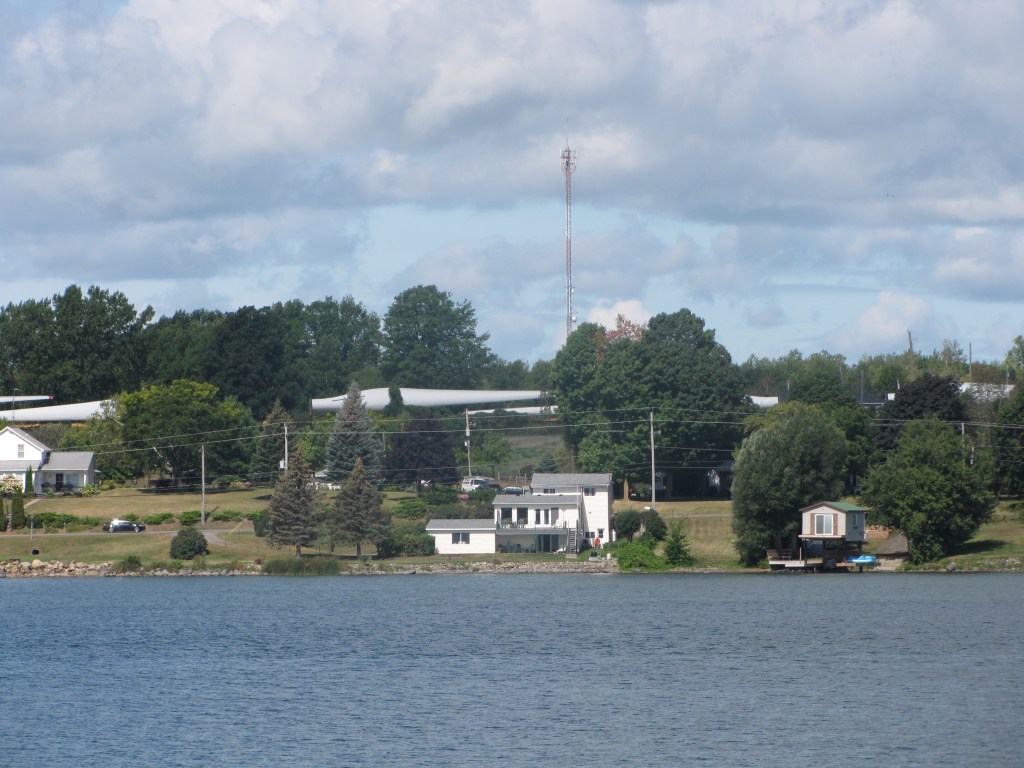 As we approached their location, in the channel, they got disoriented and started swimming back to where they had come from. Not sure if they made it back to shore, but I hope so. When we went for dinner with the Sharpes, they told us that their property had a large light house near their dock. I think this is likely it.