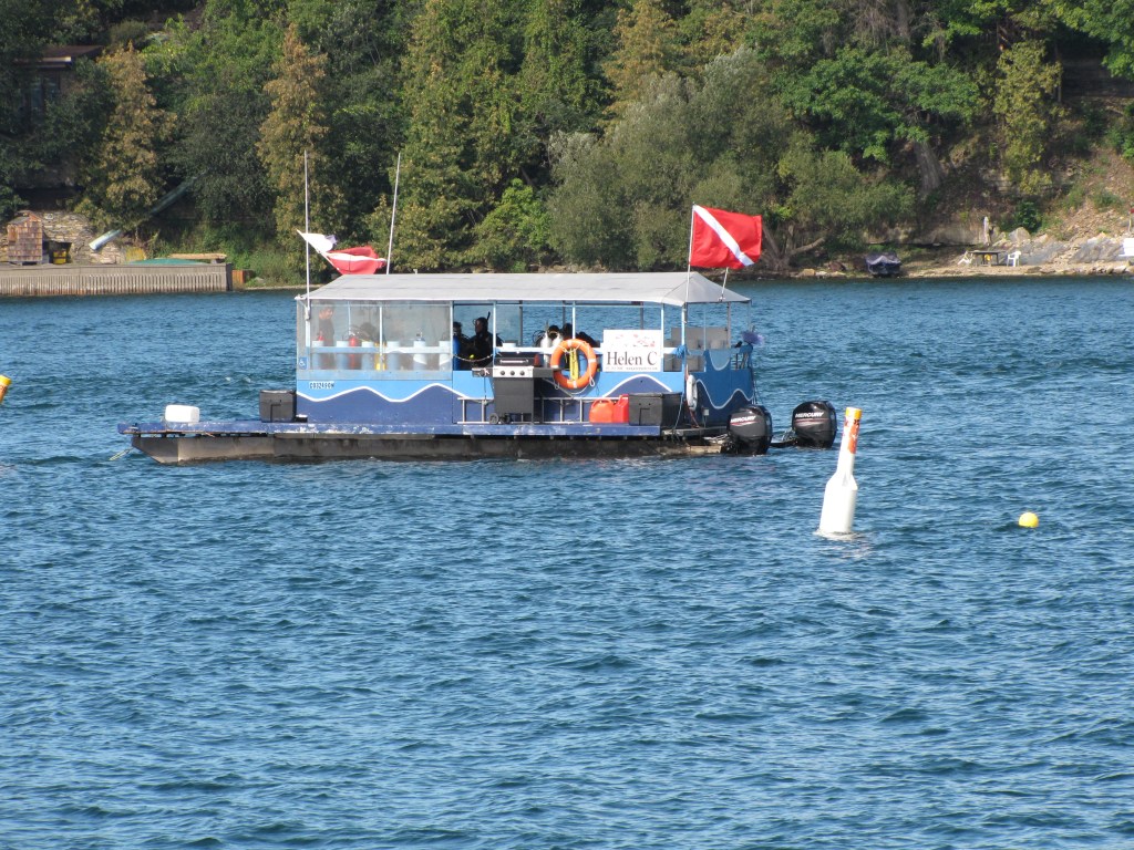 On Sunday we left Otonabee and 8:30, so that we would be at Douro when it opened at 9:00. We were though by 9:40. When we got to the next lock Sawer Creek, we were told by the locking staff, that after Monday some of the locks would be shutting down from Tuesday to Friday, so that the excess water could be circulated throughout the system. Thankfully we were on the move, so this wouldn’t affect us. Here’s a picture of the effect of the current on the markers.