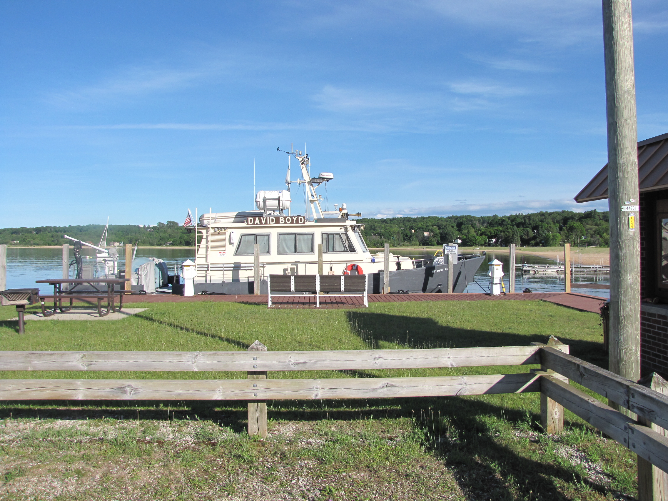 I got off the boat, and took some pictures of the site. Several people came and talked to us by the boat—we had a long conversation with a couple from Nebraska. In the evening, we were rocked by the swells coming off the lake, I slept OK, but the captain slept very little.