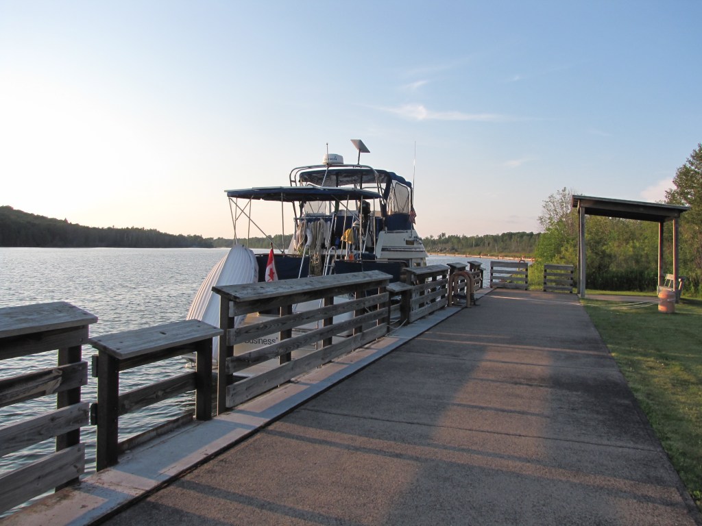 On Saturday morning, we departed Clark Bay, and went 14 miles arriving at Little trout Bay. We transitioned from the USA to Canada, and reverted from Central time back to Eastern. Here’s our first view of Canadian waters, near Pigeon Point—I can’t tell the difference.