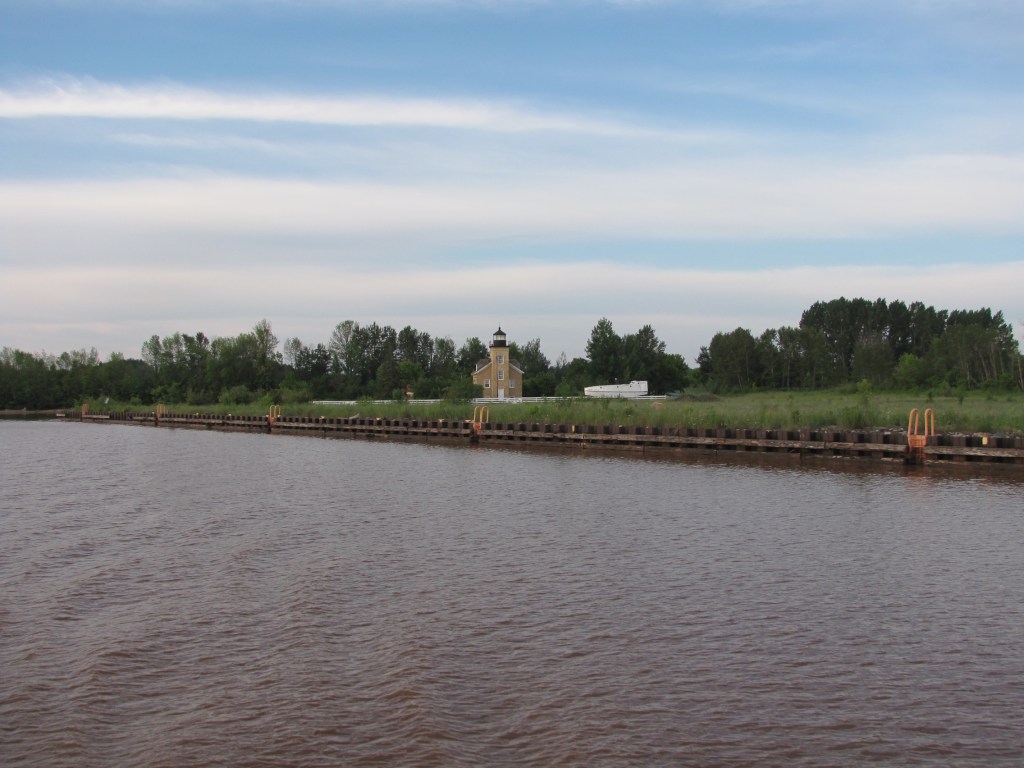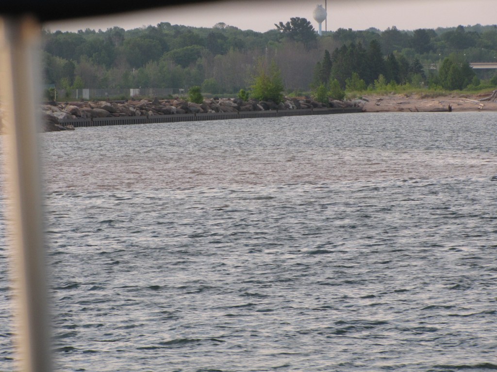After fueling and a pump out on Tuesday morning in Silver Bay , we set off for Taconite Harbour, which was 25 miles away, passing by the Pallisade Rock, with the tower on it. The wind was going to increase in the afternoon, so this would be far enough for us. The refuge harbour consisted of 3 mooring balls surrounded by a break wall. No wind issues here. We selected the closest mooring ball to the entrance, and tied off. One minor casualty- I broke the end off Andy’s locking hook, while pulling it out of the mooring ball loop. (He’s hoping that someone with a 3-D printer might be able to make him a new one.)