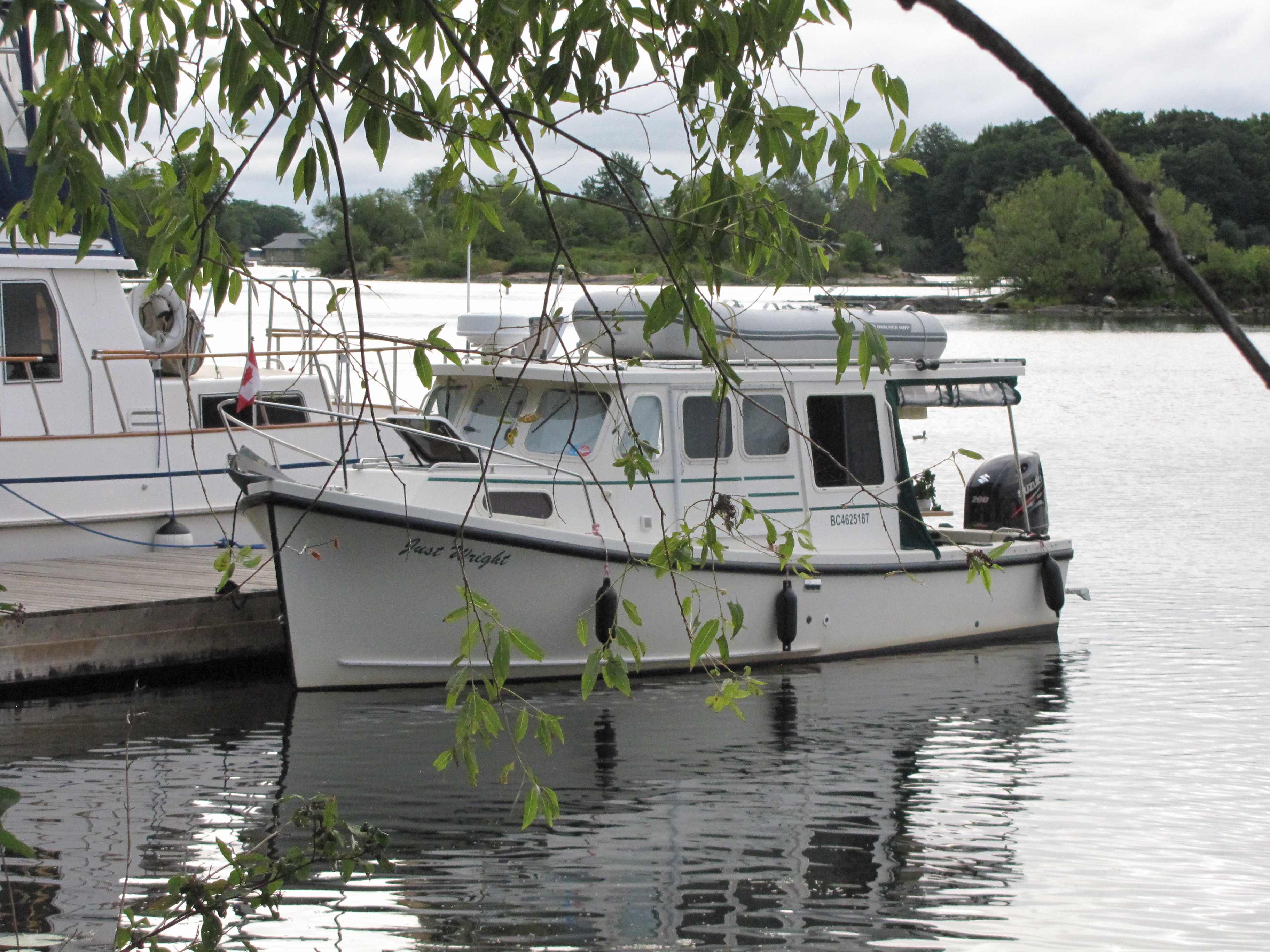 A bit of a sleepness night was had by the captain and admiral, as Andy worried about passing through Hydro glen and mcdonald’s cut—two narrow channels with a strong current on one engine. Going through these areas, Brian and I were on each side of the boat with boat hooks, but Andy did a fabulous job, and our services weren’t needed. We continue along the Trent Severn and arrived at the Couchiching lock around 11:00. We told the lock staff we were on one engine, and another boat helped us tie up, and allowed us into the lock first. Once we were out, we tied up on the port side.