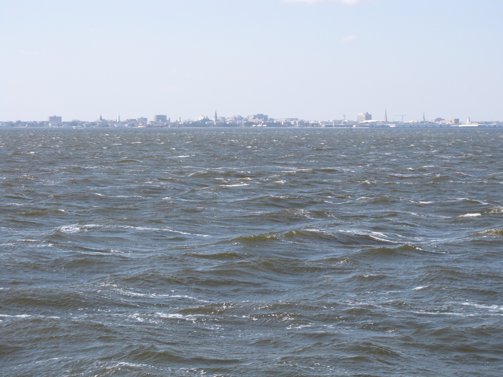 The wind began to pick up to about 10-15 miles per hour and caused some ugly waves in the harbour. We had planned to anchor at Dewees Creek, but when we checked out the suggested spots, there was no protection from the wind so we decided to go 4 miles farther to Whiteside Creek, at mile 451.5, (so another 65 mile day). It had a bunch of trees near one shore that gave us some shelter from the wind. Once it became dark, the wind seemed to subside.