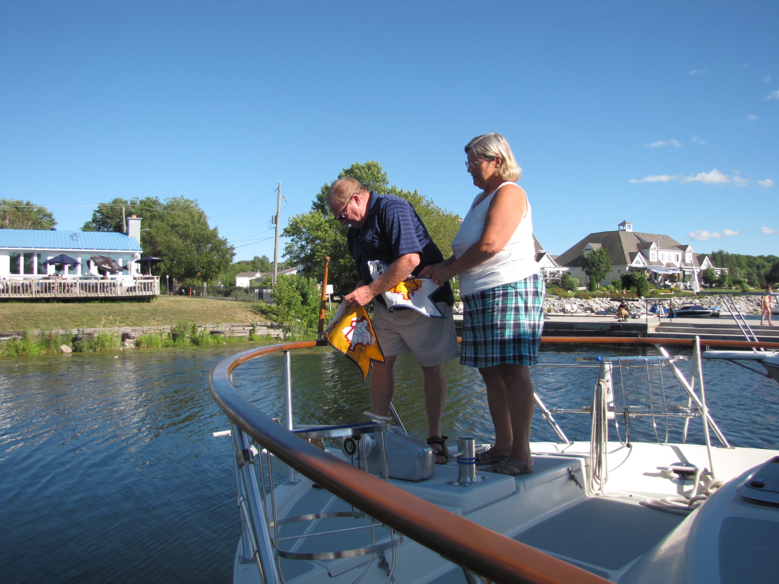 With our arrival in  Victoria Harbour on Saturday August 6th our status has changed– We  are Gold Loopers!  I checked earlier in the week with the AGLCA, according to their records we are the first from Manitoba.  Another fact on average only 85 boats complete the loop in a given year- so we are part of a very elite group!IMG_8629Victoria Harbour was the place where Andy started  August 15, 2015  with Pat and Marcia Gillespie as crew. So we have come full circle and crossed our wake.  Claudia provided me with pictures from her boat.vh3After we were tied up and checked in we walked into town and got some groceries.   In the  afternoon, we retired our white AGLCA burgee and replaced it with the Gold burgee, signifying that we have completed the loop and are now known as Gold Loopers.  People who have done the loop multiple times fly a platinum coloured burgee.IMG_8657 IMG_8658 IMG_8661