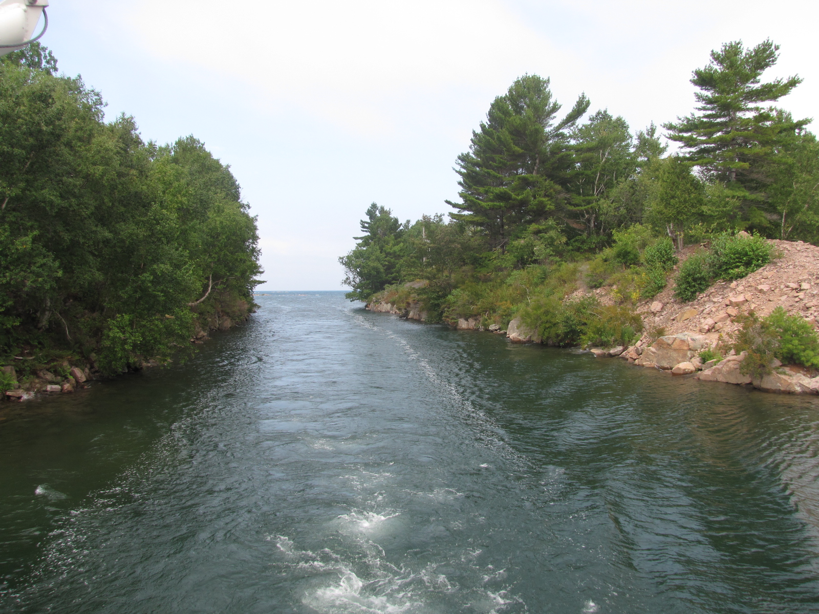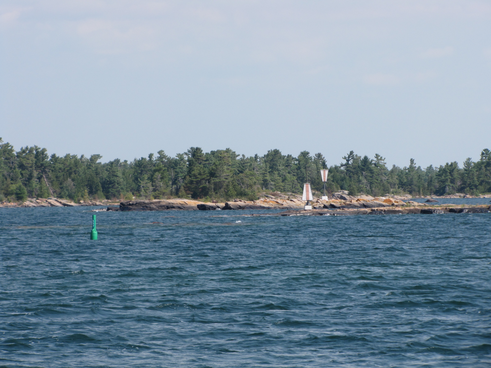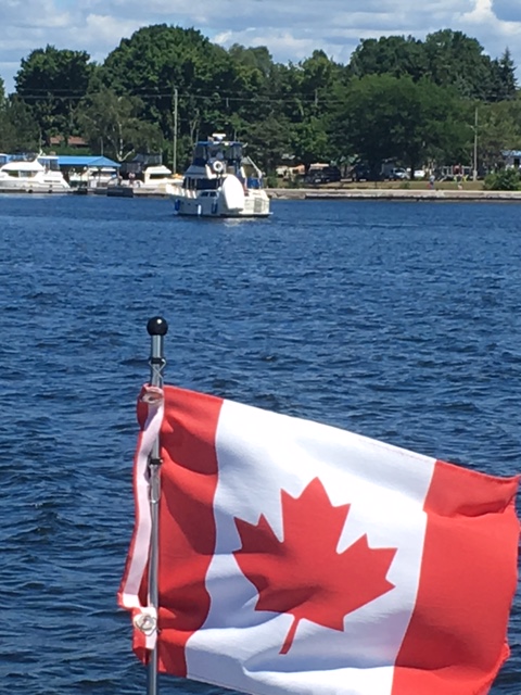 IMG_8784 After passing Port au Baril, we met up with Leary Lynn and Perfect Day, loopers who were headed to Britt.  Andy warned them about the hangdogs and the wind.  They were planning on going farther out into Georgian Bay to avoid them.    We passed through the Canoe channel  going the other wayIMG_8797  and took a new route  into  the  Parry Sound.  There was a flotilla of 14 boats leaving Killbear marina headed east.  We arrived in Parry Sound and passed by the coast guard stationIMG_8799 and the town marina.IMG_8800We had to wait for the 1:00 opening of the swing bridgeIMG_8806and then took the south channel back to Georgian Bay,   this part was new for me and there were lots of narrow channels, as well as lots of cottages and small  runabouts going to them.   We saw and island for saleIMG_8809 and met a tour boat- Chippewa.IMG_8810We continued on and the wind and waves picked up from the bay when we weren’t protected by islands.  Saw another island for sale.IMG_8814we ended up taking the Monument channel and anchoring in a Bay for the night.  We had traveled about 68 miles.IMG_8817Although they had predicted rain all day , by 8:30 pm, we still hadn’t experienced any, but it had been overcast for most of the day.