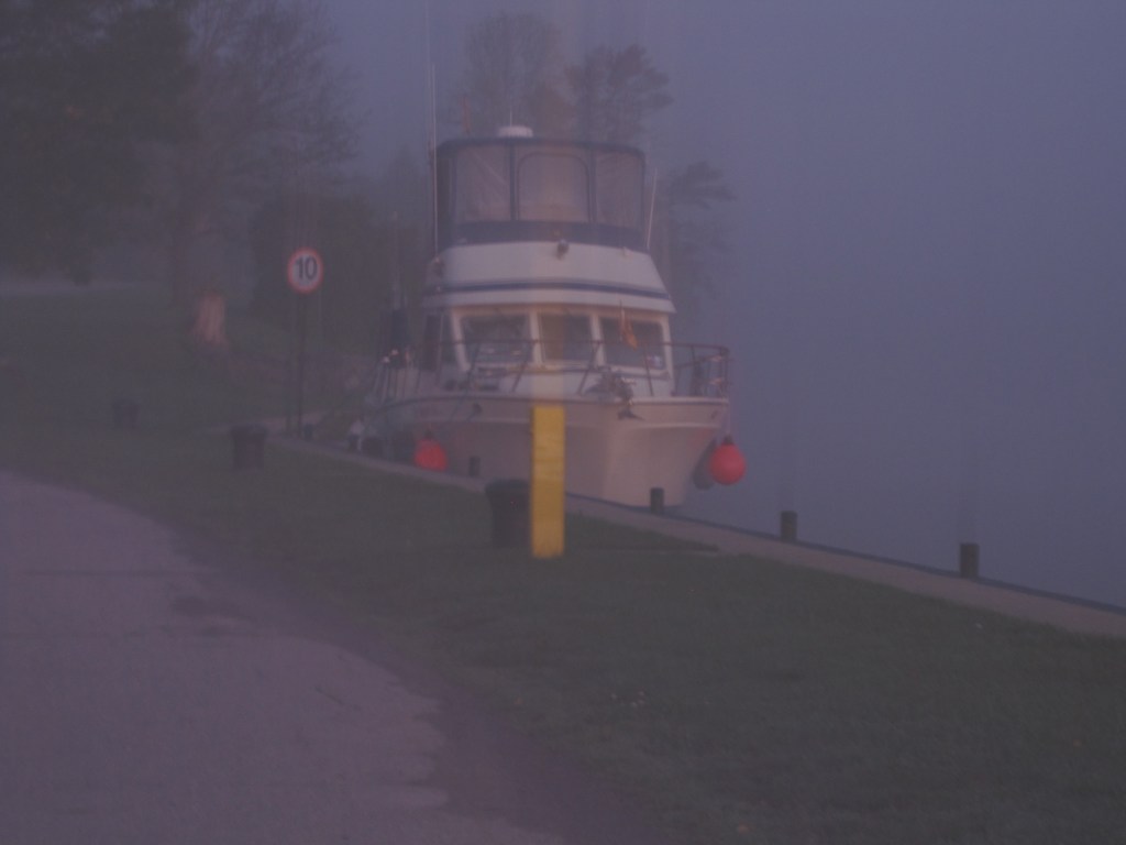 In late afternoon, my sister Maxine called to let me know that Mom had been admitted to hospital and likely wouldn’t be coming out. We decided that we would try to get back to Buckhorn as quickly as we could- but it was 13 locks away. Luckily it was the weekend, and lock hours are 9 to 4:30. When we got up Saturday morning, we were quite fogged in at Lock 17, within 30 minutes, it was starting to lift, so we fired up and left shortly after 7:00.