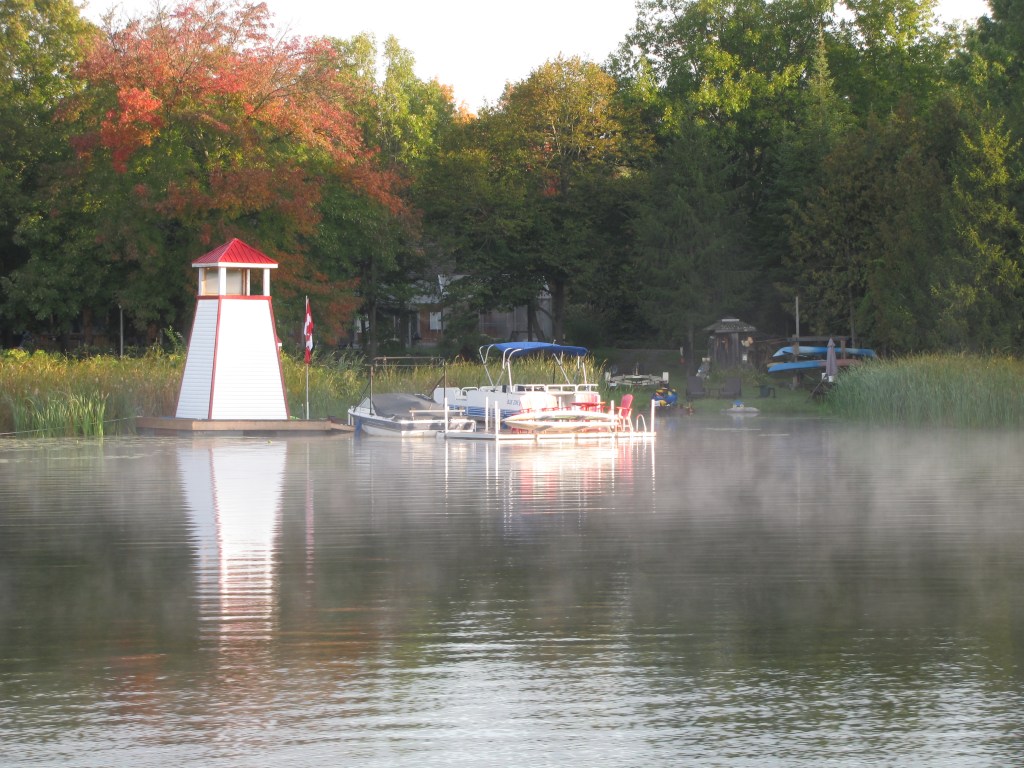 As we approached their location, in the channel, they got disoriented and started swimming back to where they had come from. Not sure if they made it back to shore, but I hope so. When we went for dinner with the Sharpes, they told us that their property had a large light house near their dock. I think this is likely it.